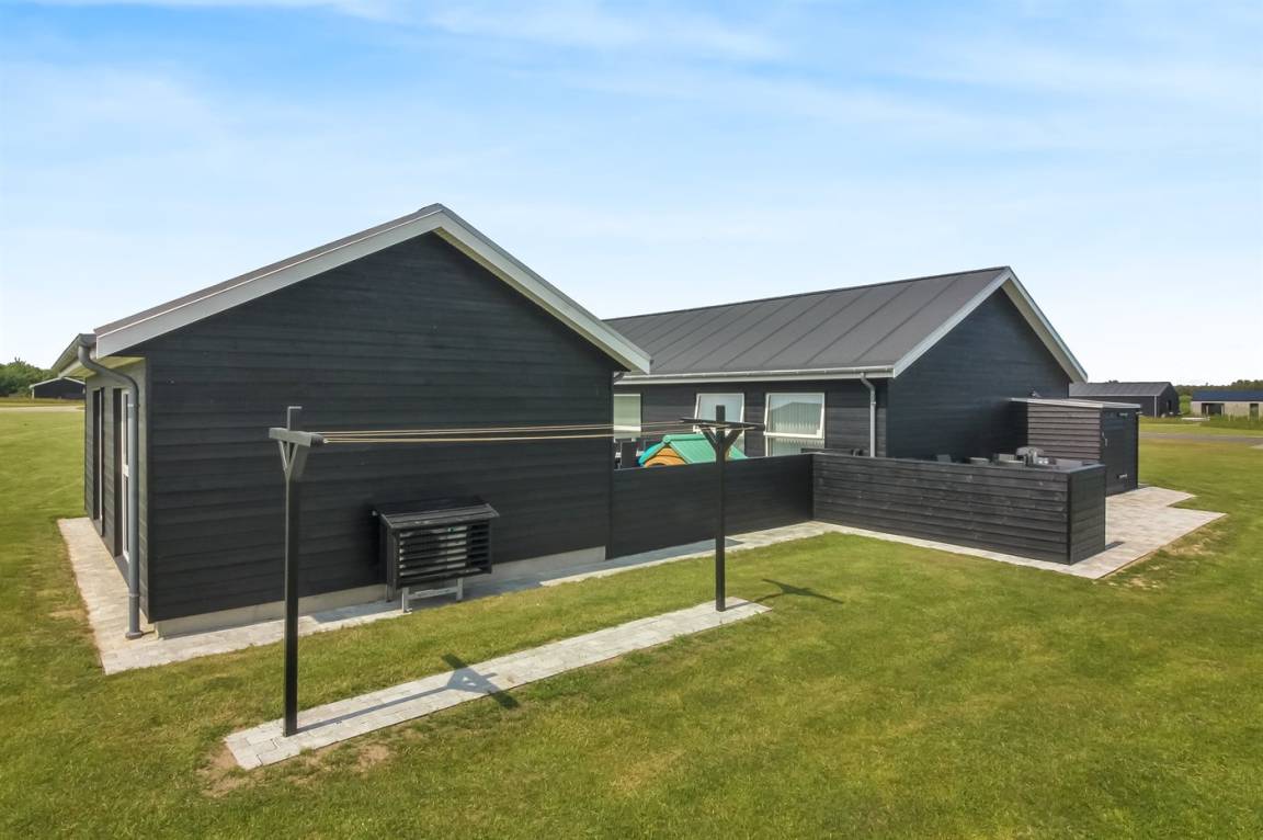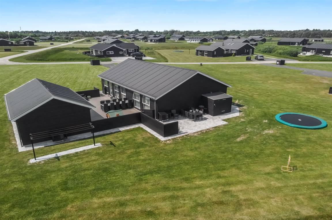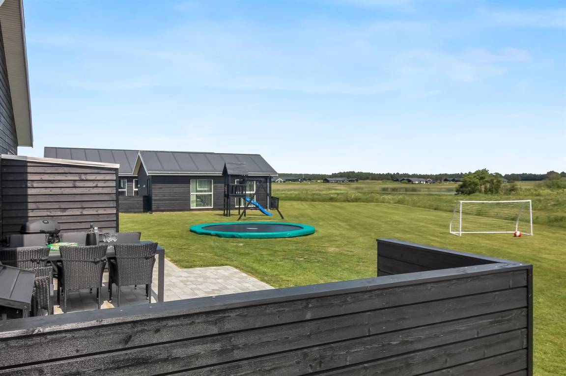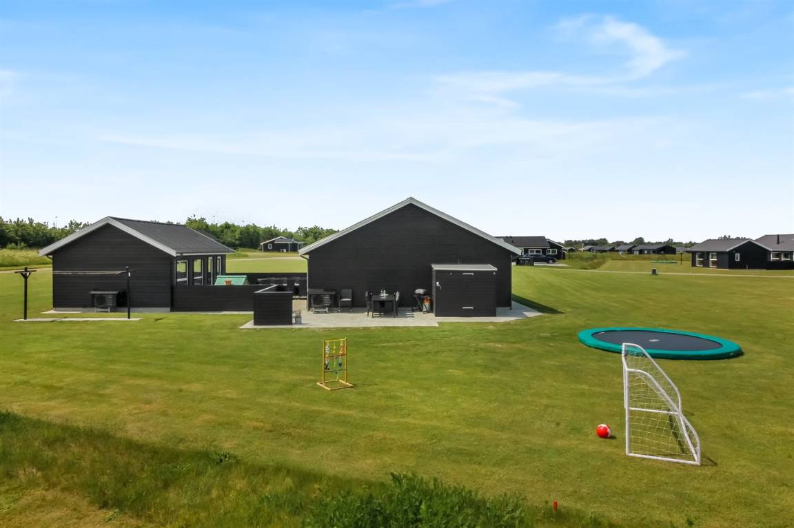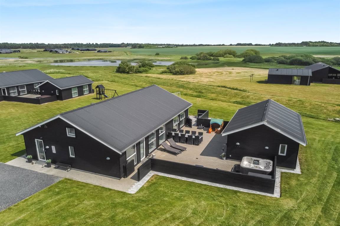 Ein modernes Ferienhaus aus dem Jahr 2019 mit viel Platz, gelegen auf einem 2106 m² großen, offenen Naturgrundstück in einem neuen Ferienhausgebiet, das sich noch im Aufbau befindet. Das Gebiet bietet dir 3 Seen und liegt in kurzer Entfernung zur Nordsee. Das Haus liegt in Gehweite vom Grønhøj Strand – ein herrlich breiter Badestrand mit vielen schönen Dünen, die sowohl Kindern als auch Erwachsenen Möglichkeiten zum Spielen und Entspannen bieten. Den Strand erreichst du zu Fuß entweder über das Wegenetz durch das Ferienhausgebiet oder über die Straße.
