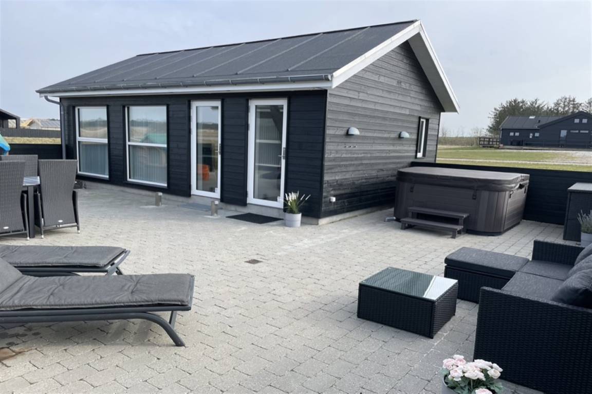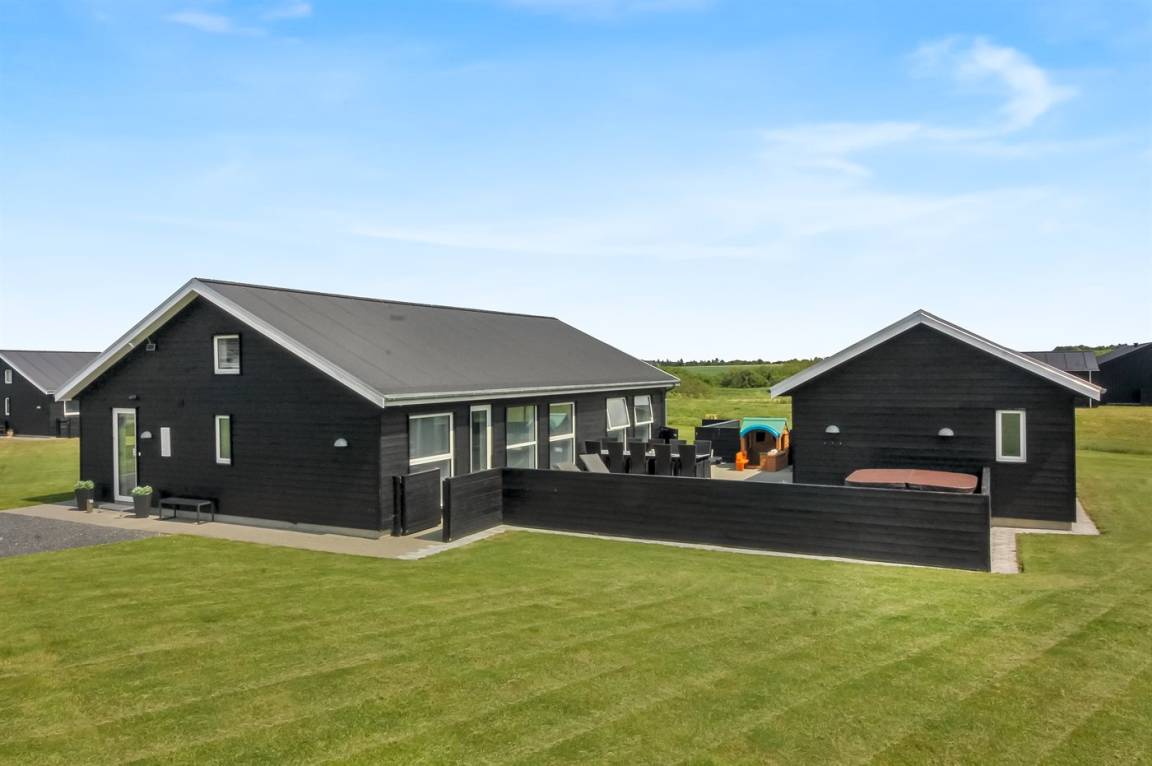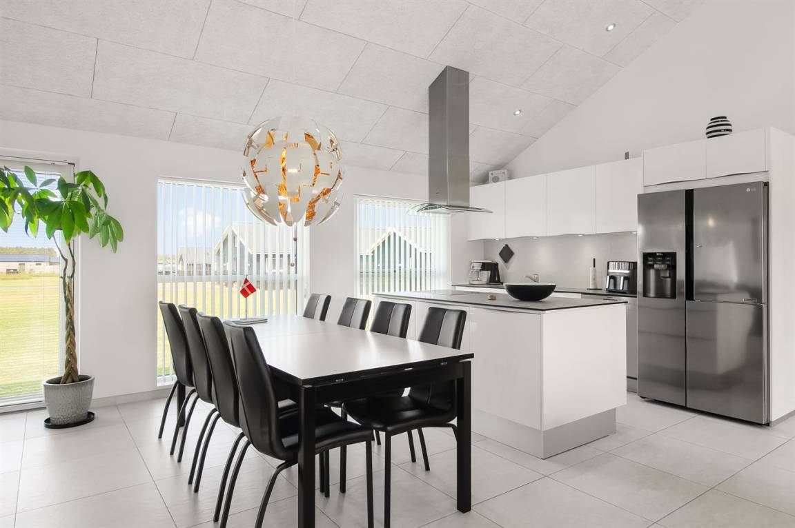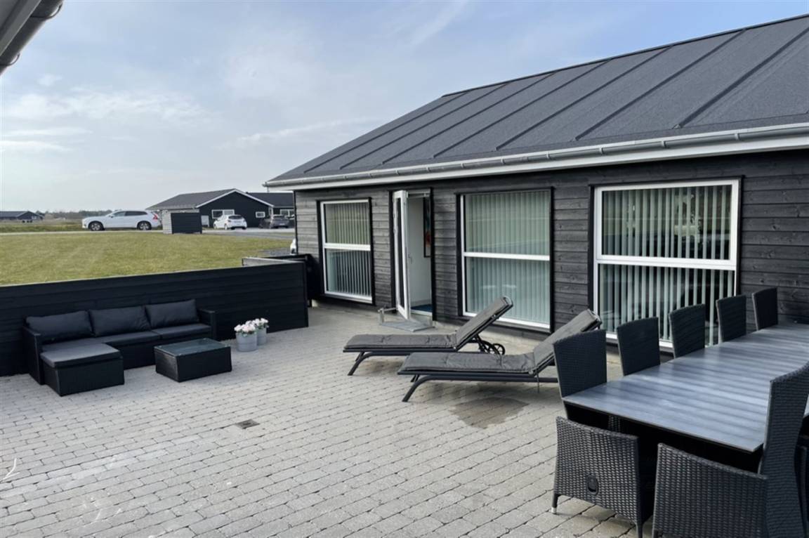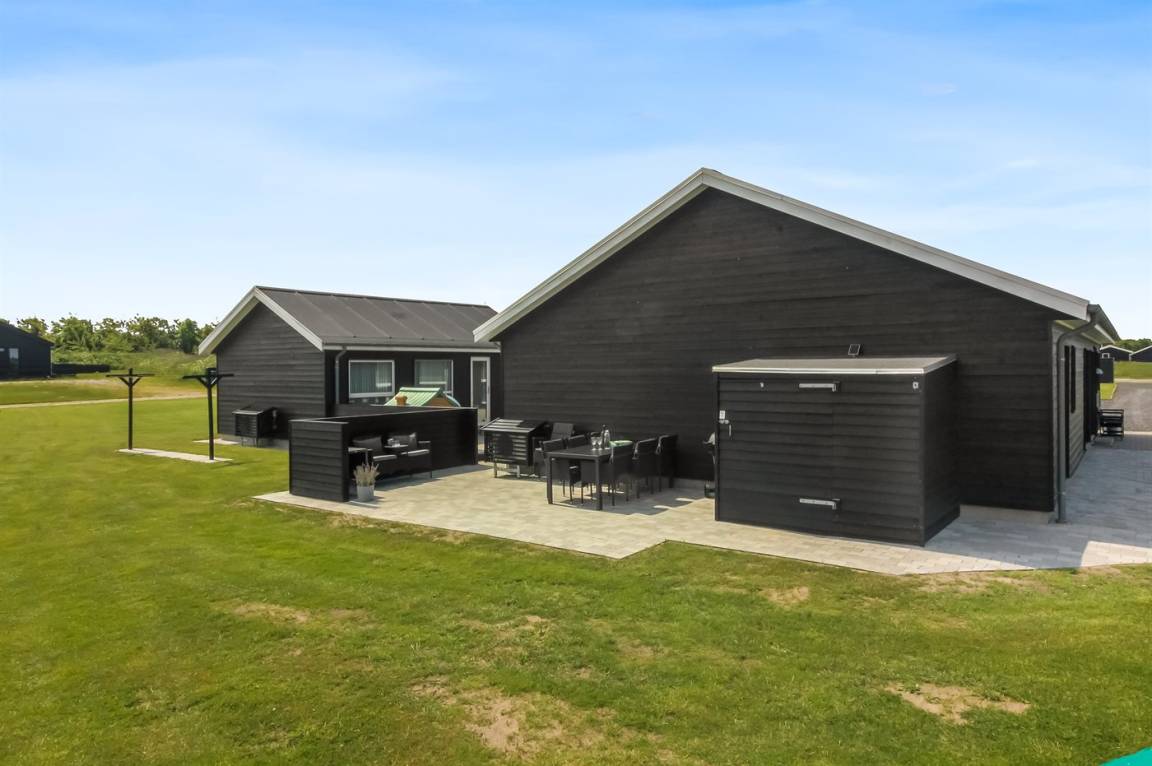 Ein modernes Ferienhaus aus dem Jahr 2019 mit viel Platz, gelegen auf einem 2106 m² großen, offenen Naturgrundstück in einem neuen Ferienhausgebiet, das sich noch im Aufbau befindet. Das Gebiet bietet dir 3 Seen und liegt in kurzer Entfernung zur Nordsee. Das Haus liegt in Gehweite vom Grønhøj Strand – ein herrlich breiter Badestrand mit vielen schönen Dünen, die sowohl Kindern als auch Erwachsenen Möglichkeiten zum Spielen und Entspannen bieten. Den Strand erreichst du zu Fuß entweder über das Wegenetz durch das Ferienhausgebiet oder über die Straße.
