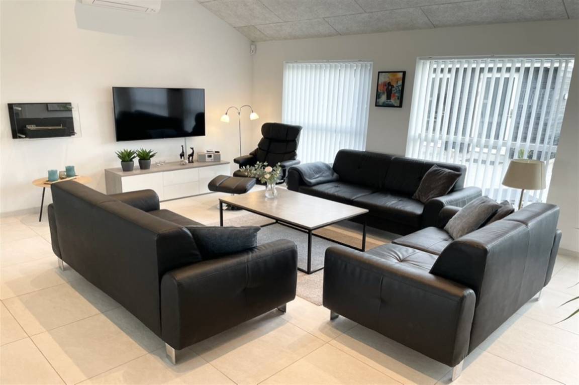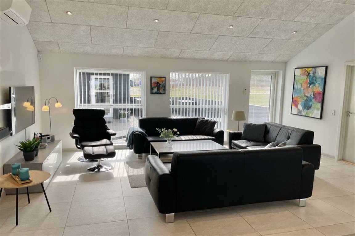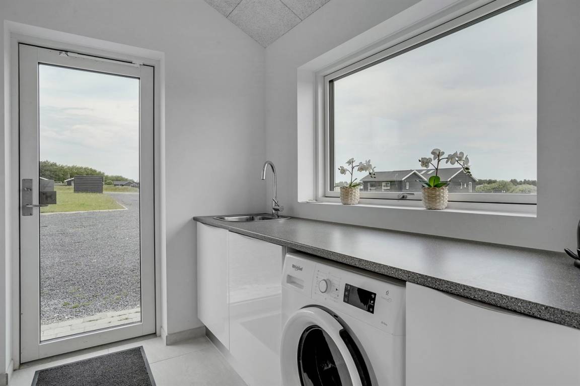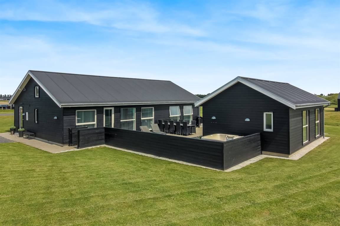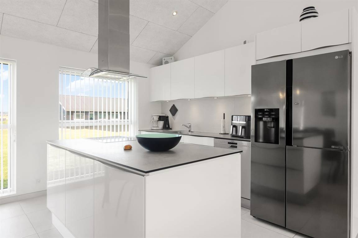 Ein modernes Ferienhaus aus dem Jahr 2019 mit viel Platz, gelegen auf einem 2106 m² großen, offenen Naturgrundstück in einem neuen Ferienhausgebiet, das sich noch im Aufbau befindet. Das Gebiet bietet dir 3 Seen und liegt in kurzer Entfernung zur Nordsee. Das Haus liegt in Gehweite vom Grønhøj Strand – ein herrlich breiter Badestrand mit vielen schönen Dünen, die sowohl Kindern als auch Erwachsenen Möglichkeiten zum Spielen und Entspannen bieten. Den Strand erreichst du zu Fuß entweder über das Wegenetz durch das Ferienhausgebiet oder über die Straße.