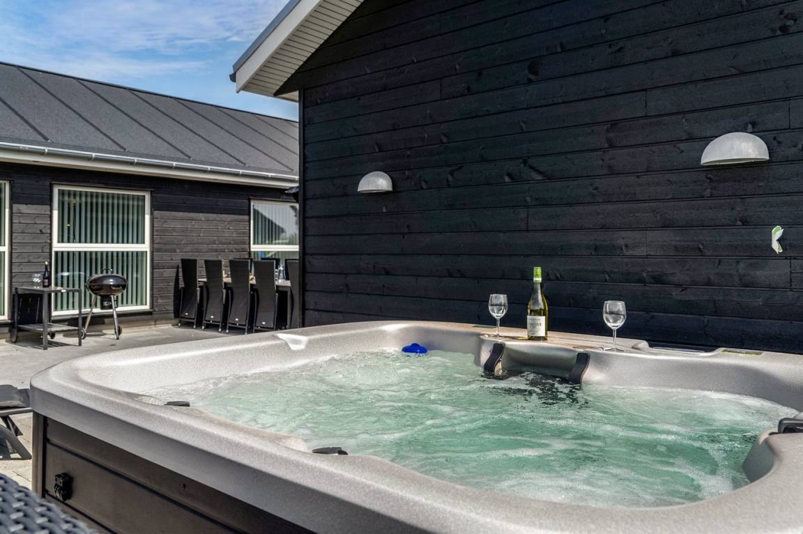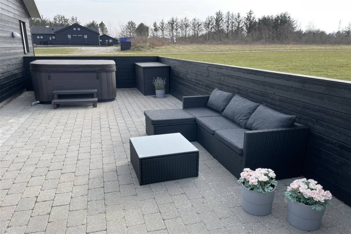 Haus und Annex sind durch eine große, schöne Terrasse von 80 m² verbunden, wo du das ganze Jahr über den Außen-Whirlpool für 4 Personen nutzen kannst. Außerdem gibt es ein Spielhaus und einen Sandkasten. Ein Abstellraum steht dir zur Verfügung. In der Auflagenbox auf der Terrasse findest du verschiedene Spiele für Aktivitäten im Freien – z. B. Krocket, Swingball, Wikingerschach, Cornhole und Leitergolf.