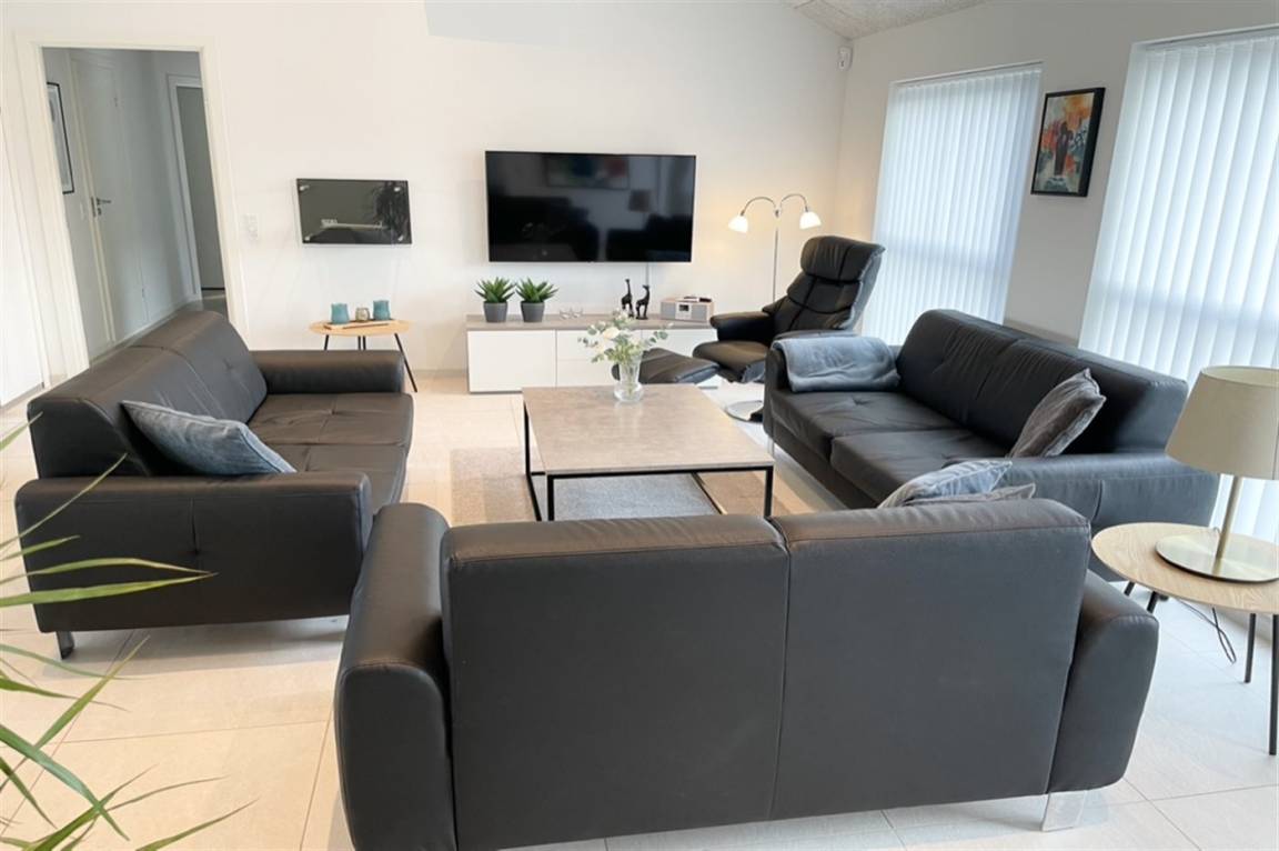 Das Ferienhaus ist 125 m² groß. Die Einrichtung ist hell und einladend. Haustiere sind NICHT erlaubt. Außerdem gibt es ein 36 m² großes Annex mit Aktivitätsraum und Gäste-WC. Am Ferienhaus findest du Parkplätze und eine 16 A CE-Ladestation für Elektroautos (im Haus gibt es ein tragbares 11 kW/16A-Ladegerät für die Außensteckdose mit Typ-2-Ladekabel).
