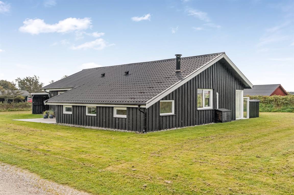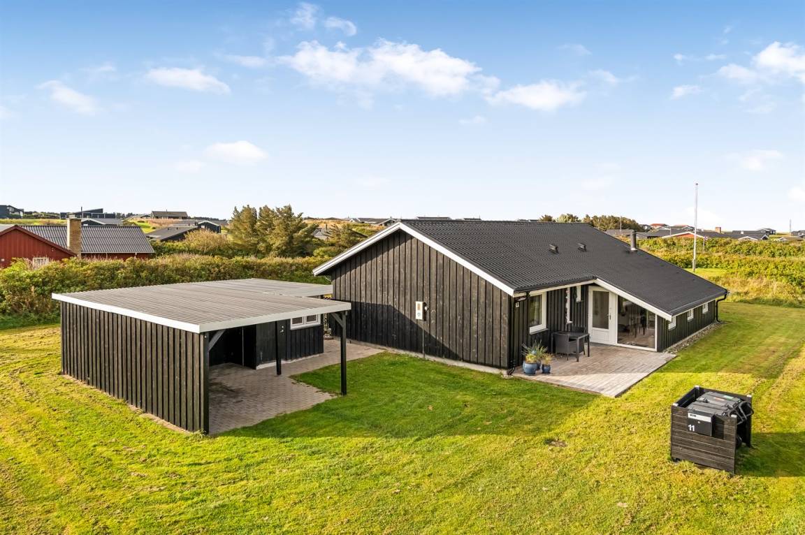 DraußenDie Ferienunterkunft liegt auf einem 1254 m² großen Naturgrundstück. Die Entfernung zum Meer beträgt 400 m. Die nächste Einkaufsmöglichkeit liegt 3500 m entfernt. Es steht ein 60 m² Terrassenareal zur Verfügung. Es steht ein Carport zur Verfügung. Es ist ein Ladestecker für Elektroautos installiert. Parkplatz auf dem Grundstück.