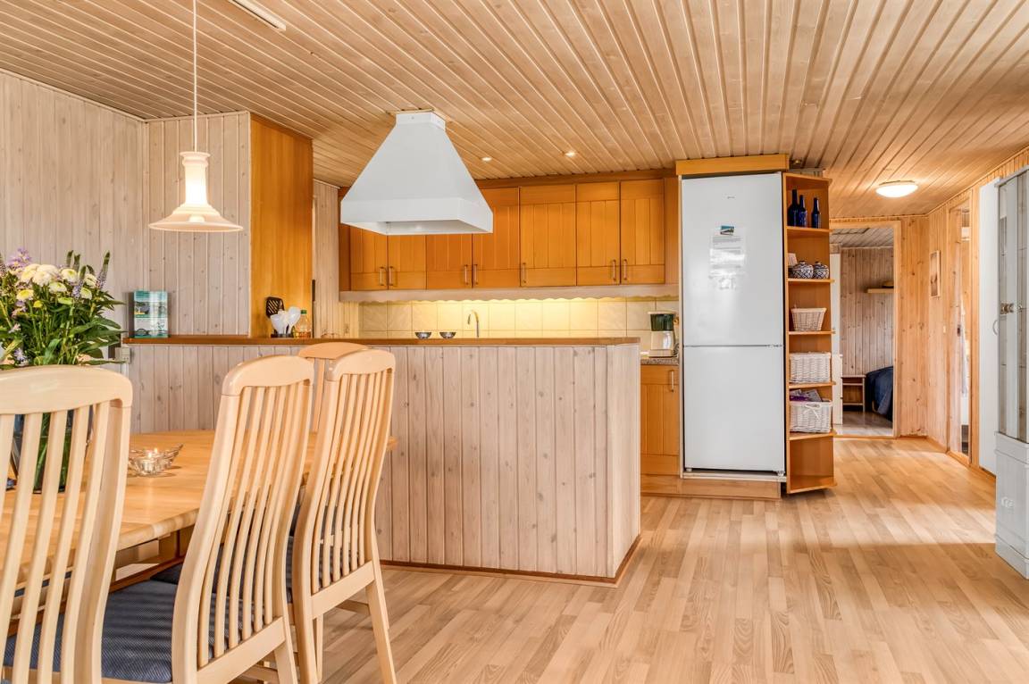 EinrichtungDas Ferienhaus eignet sich für 8 Personen sowie 1 Kleinkind bis zu 3 Jahren. Die Ferienunterkunft hat eine Wohnfläche von 111 m² und wurde 1973 gebaut. 2017 wurde die Ferienunterkunft teilweise renoviert. Es ist erlaubt 1 Haustier mitzubringen. Die Ferienunterkunft ist mit energiesparender Wärmepumpe ausgestattet. Die Ferienunterkunft ist mit Waschmaschine ausgestattet. Tiefkühlmöglichkeit mit 100 Liter Nutzinhalt.Es gibt außerdem einen Holzpelletofen. Für die jüngsten Feriengäste ist 1 Kinderhochstuhl vorhanden.