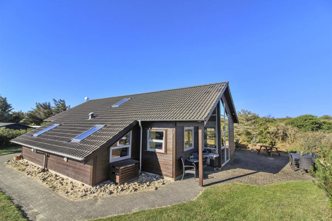 DraußenDie Ferienunterkunft liegt auf einem 1670 m² großen Dünengrundstück. Die Entfernung zum Meer beträgt 500 m. Die nächste Einkaufsmöglichkeit liegt 5500 m entfernt. Es steht ein 30 m² Terrassenareal zur Verfügung. Außerdem gibt es 3 m² überdachte Terrasse. Geräteraum.2 Fahrräder stehen zur Verfügung. Wir garantieren nicht für den Zustand der Fahrräder, und jedwede Wartung obliegt den Gästen. Schaukel. Sandkasten. Es ist ein Ladestecker für Elektroautos installiert. Ladestecker Typ 2. Mit einer Ladeleistung von 11 kW. Parkplatz auf dem Grundstück.