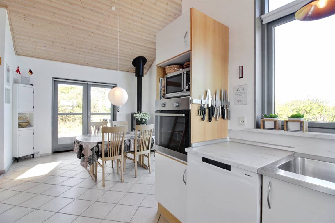 EinrichtungDas Ferienhaus eignet sich für 6 Personen sowie 1 Kleinkind bis zu 3 Jahren. Die Ferienunterkunft hat eine Wohnfläche von 128 m² und wurde 2002 gebaut. Es ist erlaubt 1 Haustier mitzubringen. Die Ferienunterkunft ist mit energiesparender Wärmepumpe ausgestattet. Fußbodenheizung im Flur. Die Ferienunterkunft ist mit Waschmaschine ausgestattet. Wäschetrockner. Tiefkühlmöglichkeit mit 77 Liter Nutzinhalt. Es gibt außerdem einen Kaminofen. Für die jüngsten Feriengäste ist 1 Kinderhochstuhl vorhanden.