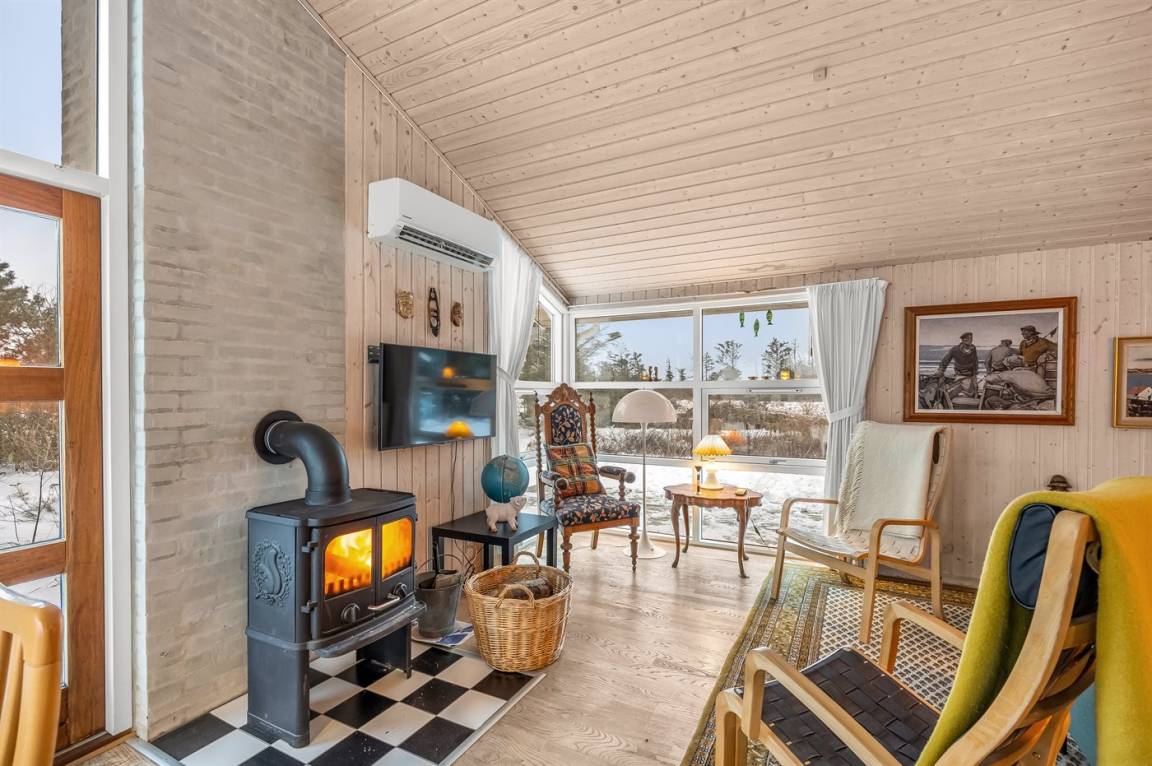 Dieses hell eingerichtete Ferienhaus liegt in fußläufiger Entfernung zum breiten Sandstrand von Grønhøj.