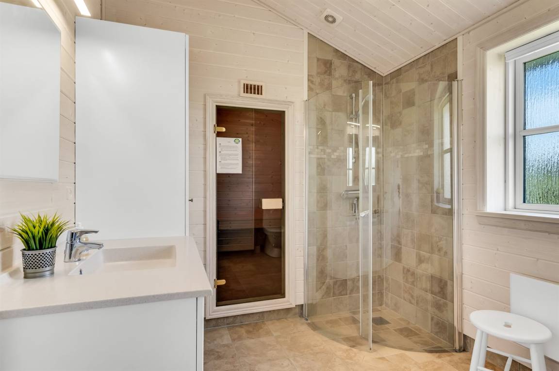 Genießen Sie einen Aufenthalt in der Sauna, wenn Sie vom Strand nach Hause kommen sind und bevor Sie es sich mit der Familie auf der großen offenen Terrasse oder im gemütlichen Wohnzimmer gemütlich machen.