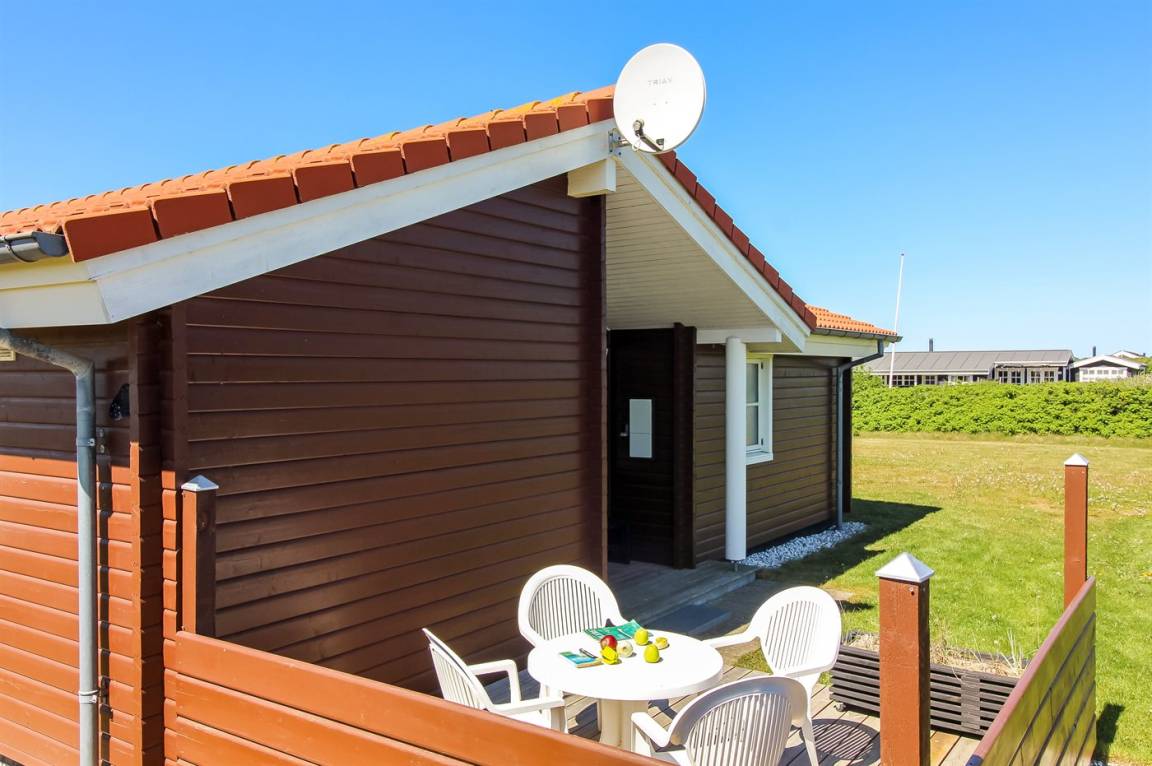 DraußenDie Ferienunterkunft liegt auf einem 2414 m² großen Naturgrundstück. Die Entfernung zum Meer beträgt 300 m. Die nächste Einkaufsmöglichkeit liegt 1500 m entfernt. Es steht ein 25 m² Terrassenareal zur Verfügung. Außerdem gibt es 20 m² überdachte Terrasse. Geräteraum. Parkplatz auf dem Grundstück.