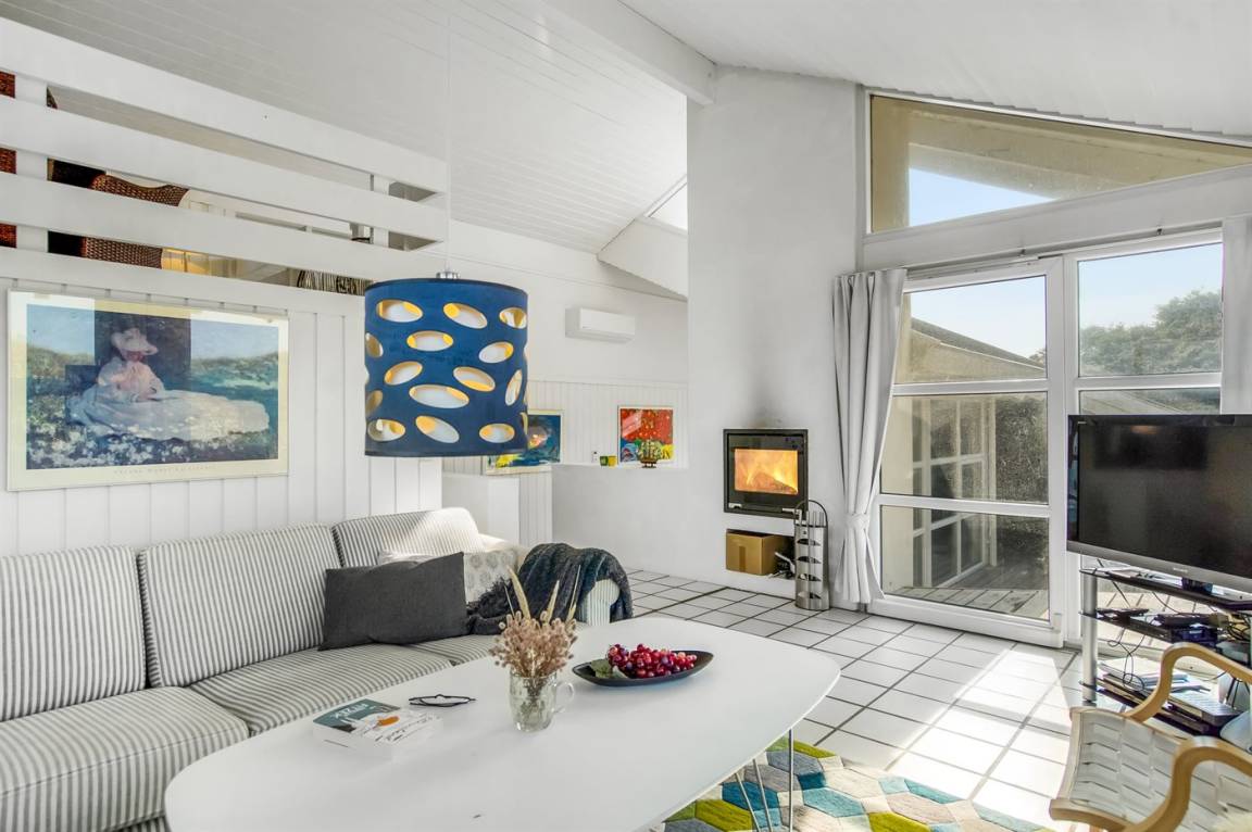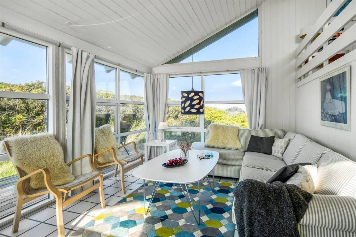 Besonders das erhöht gelegene Wohnzimmer lädt zum Entspannen und Wohlfühlen ein. Hier könnt ihr es euch vor dem Kaminofen gemütlich machen, den Ausblick auf das Meer und die Dünen durch die Panoramafenster genießen, DAB/FM-Radio mit Bluetooth hören, Brettspiele oder Wii spielen oder ein gutes Buch lesen.
