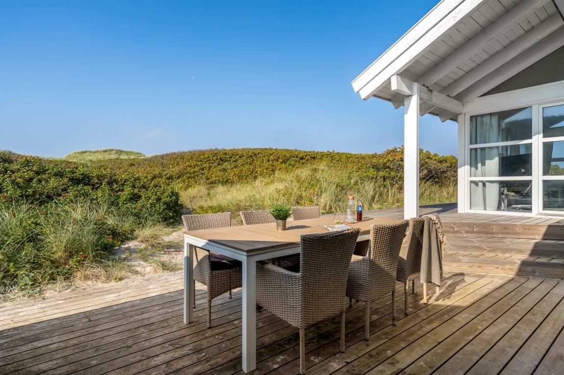 Sucht ihr ein Ferienhaus, das den perfekten Rahmen für einen Familienurlaub bietet? Dann ist Hedvigsvej 7 eine hervorragende Wahl. Ein architektonisch gestaltetes Ferienhaus mit Swimmingpool in erster Reihe und nur ca. 50 Meter über einen privaten Naturpfad vom Strand entfernt. Hier habt ihr während des gesamten Urlaubs die Möglichkeit, das Rauschen des Meeres zu genießen. Das Haus liegt auf einem großen Naturgrundstück in einer Senke und ist von einer großen Holzterrasse umgeben. Ihr könnt also jederzeit Sonne, Schatten und Windschutz finden, egal aus welcher Richtung der Wind weht und zu welcher Tageszeit. Vom Grundstück aus habt ihr Blick auf das Meer und die Dünen. Auf der Düne vor dem Haus gibt es den perfekten Spot, um abends einen Drink zu genießen und den Sonnenuntergang zu beobachten.