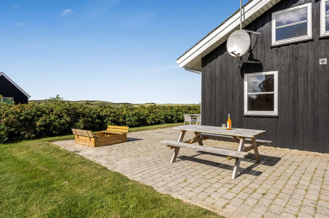DraußenDie Ferienunterkunft liegt auf einem 1015 m² großen Naturgrundstück. Die Entfernung zum Meer beträgt 300 m. Die nächste Einkaufsmöglichkeit liegt 5500 m entfernt. In einem Abstand von 6700 m gibt es einen Golfplatz. Es steht ein 50 m² Terrassenareal zur Verfügung. Geräteraum. Sandkasten. Es steht ein Grill zur Verfügung. Parkplatz auf dem Grundstück.