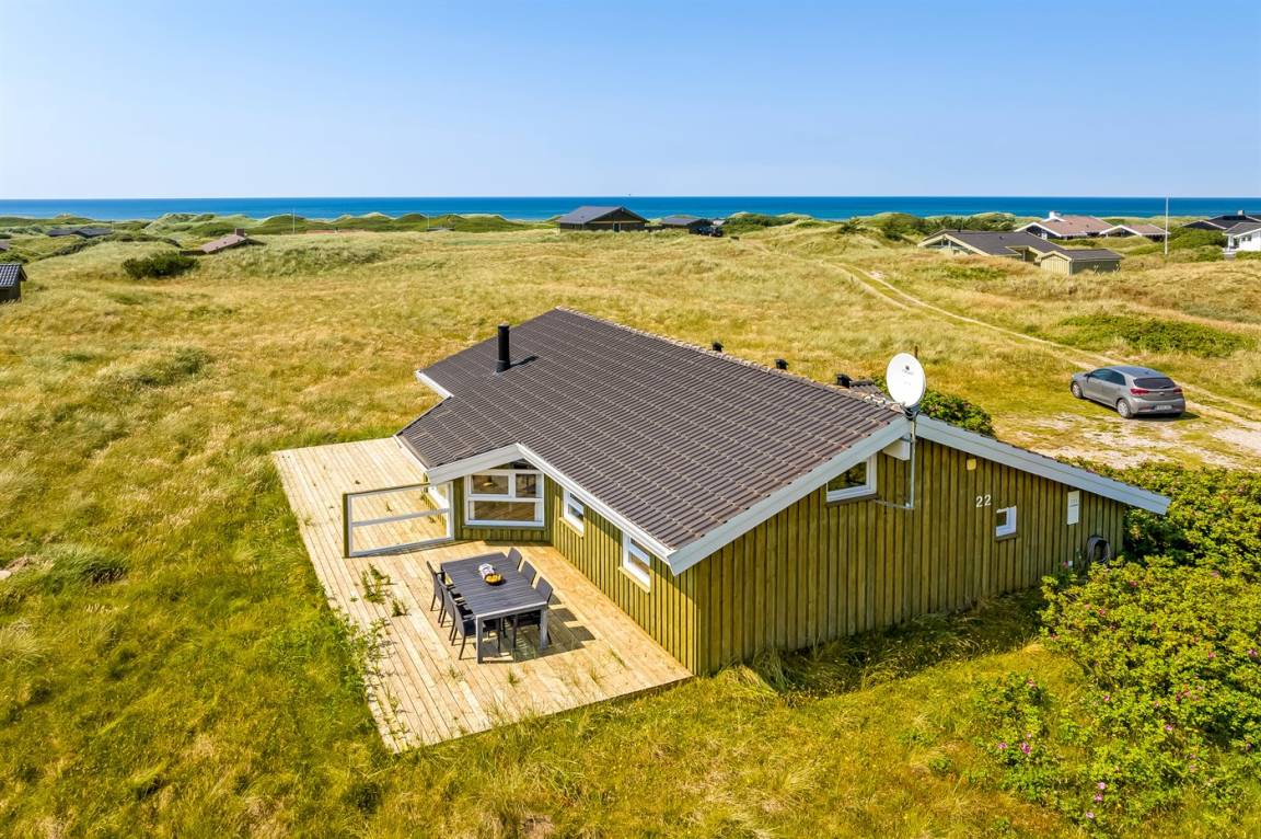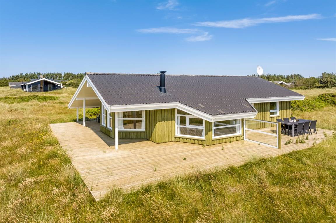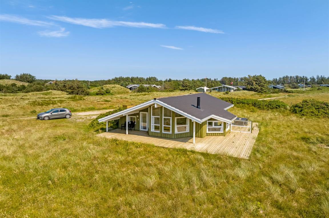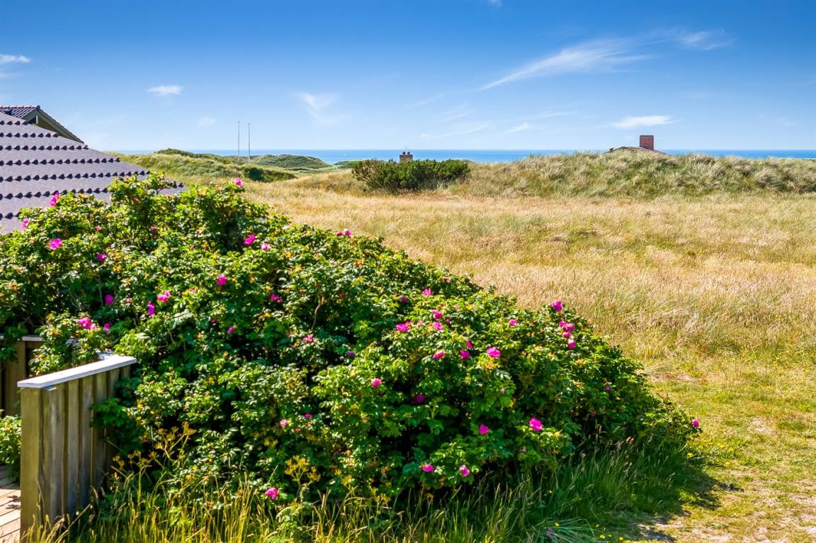 Schönes Freizeithaus mit flotter Aussicht über die Dünen und das Meer. Das Haus liegt auf einem herrlichen Naturgrundstück mit Strandhafer und Heckenrosen in einer äußerst attraktiven Umgebung, die zu Familienwanderungen inden Dünen samt Standaktivitäten am brausenden Meer einlädt.