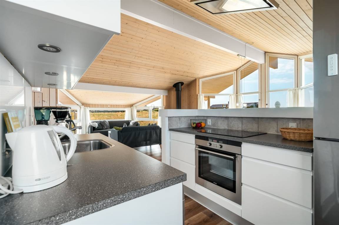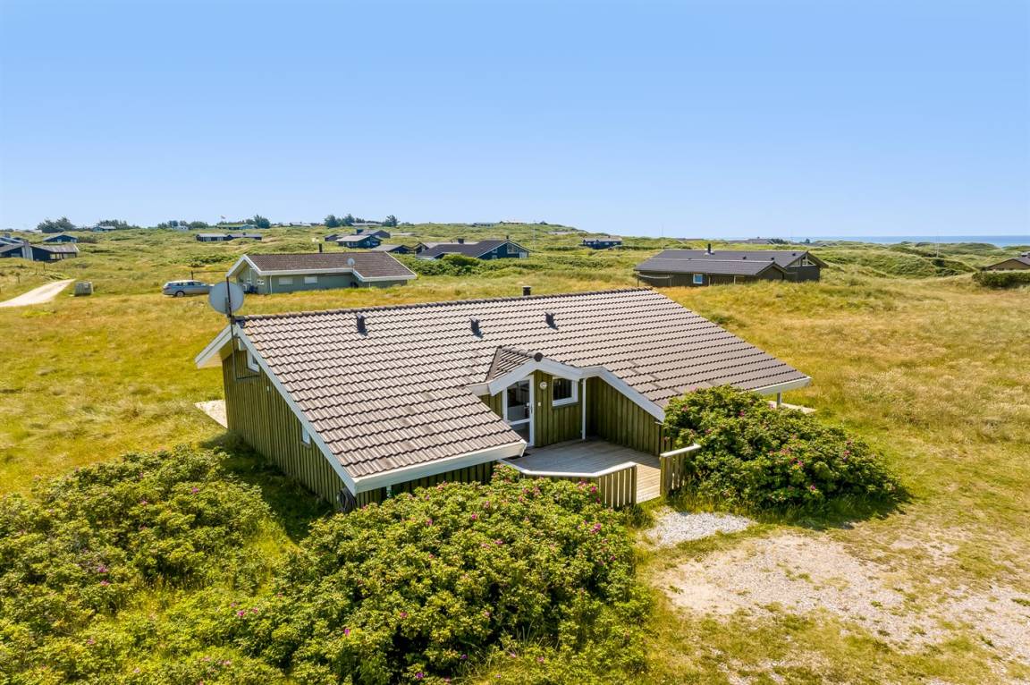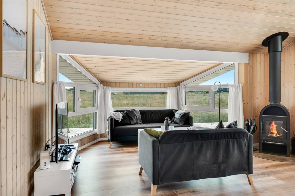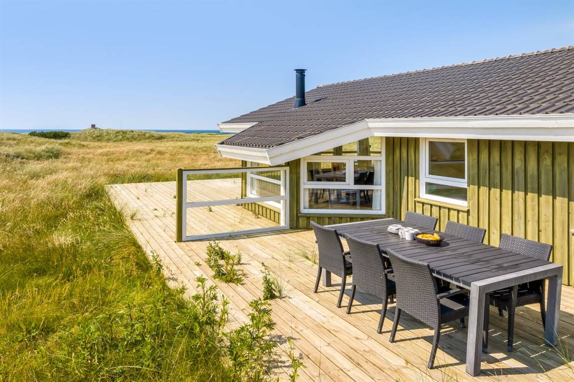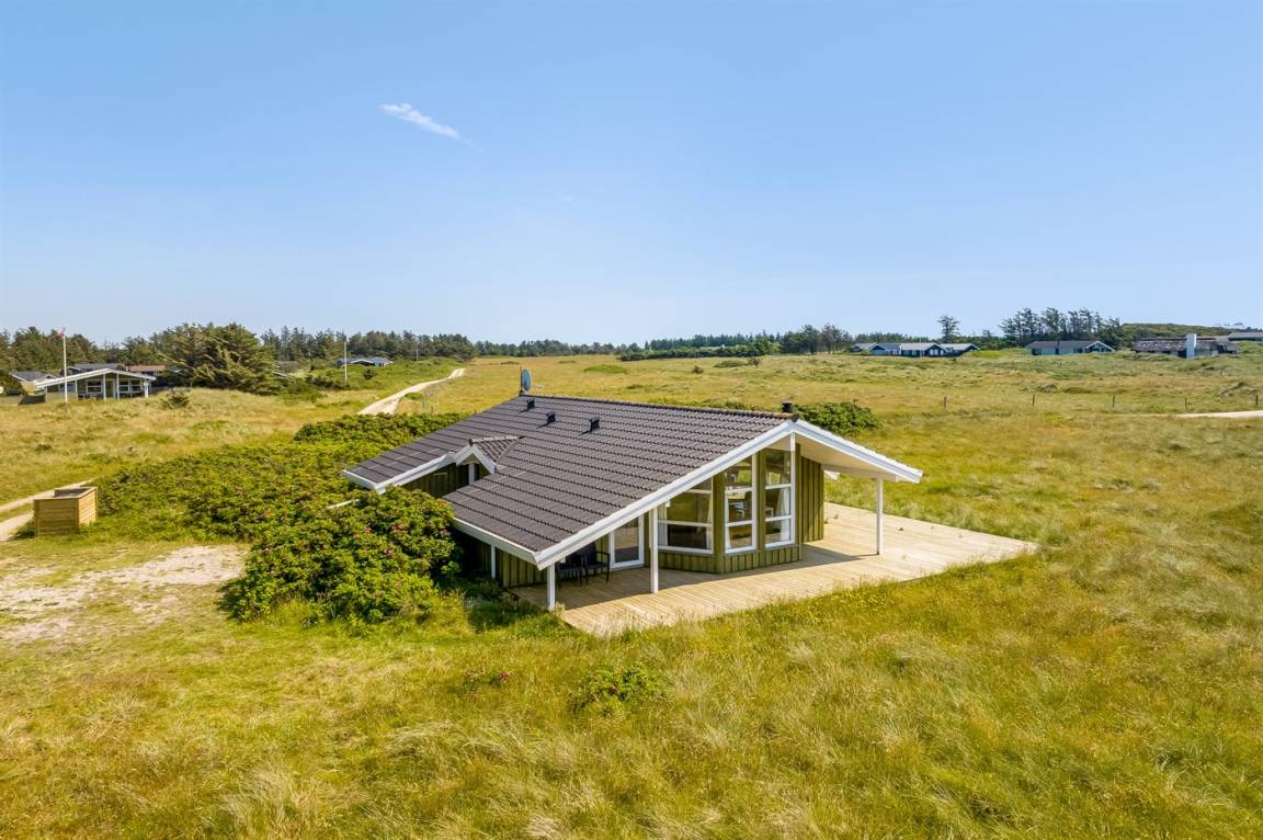 Schönes Freizeithaus mit flotter Aussicht über die Dünen und das Meer. Das Haus liegt auf einem herrlichen Naturgrundstück mit Strandhafer und Heckenrosen in einer äußerst attraktiven Umgebung, die zu Familienwanderungen inden Dünen samt Standaktivitäten am brausenden Meer einlädt.