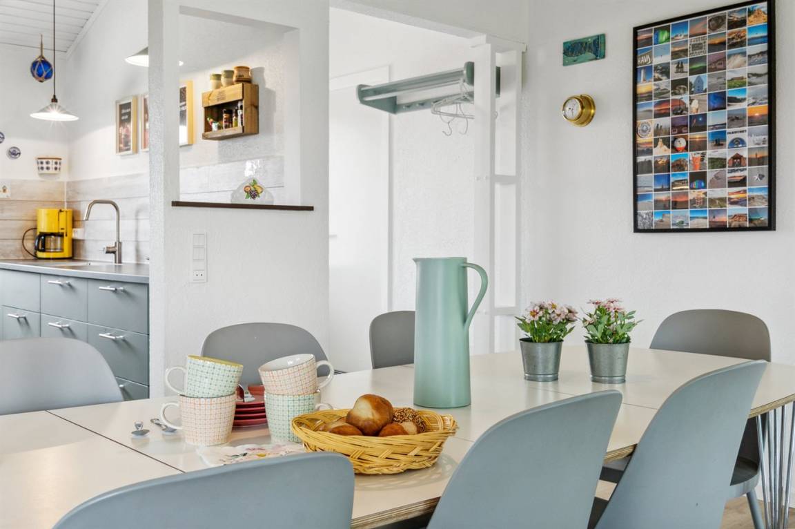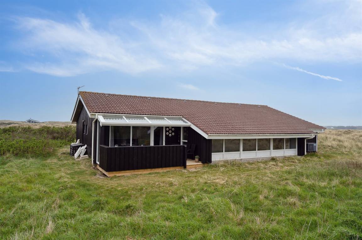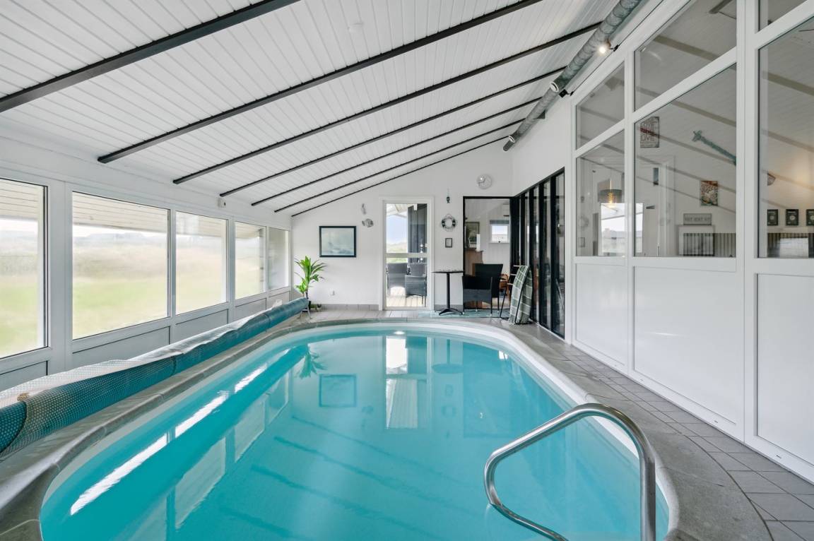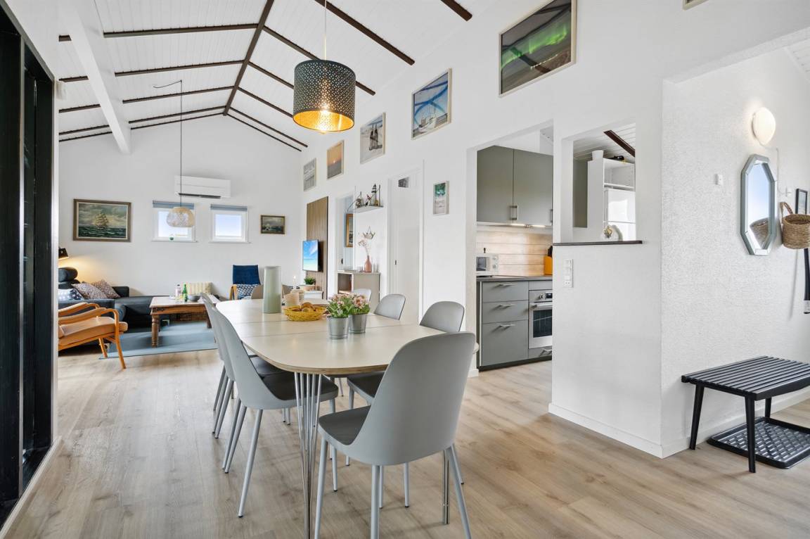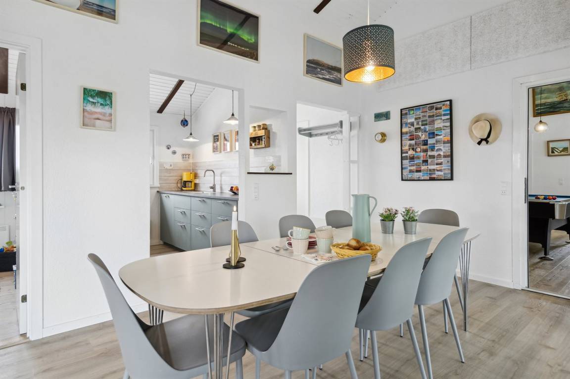Ein schönes Poolhaus im beliebten Feriengebiet Grønhøj. Genieße ein Glas Wein oder eine Tasse Kaffee auf der überdachten Terrasse - bei jedem Wetter. Nach einem langen Spaziergang am Meer kannst du es dir anschließend mit einem guten Buch gemütlich machen oder die Familie bei einem Spiel Karten herausfordern.