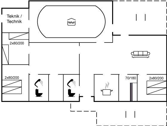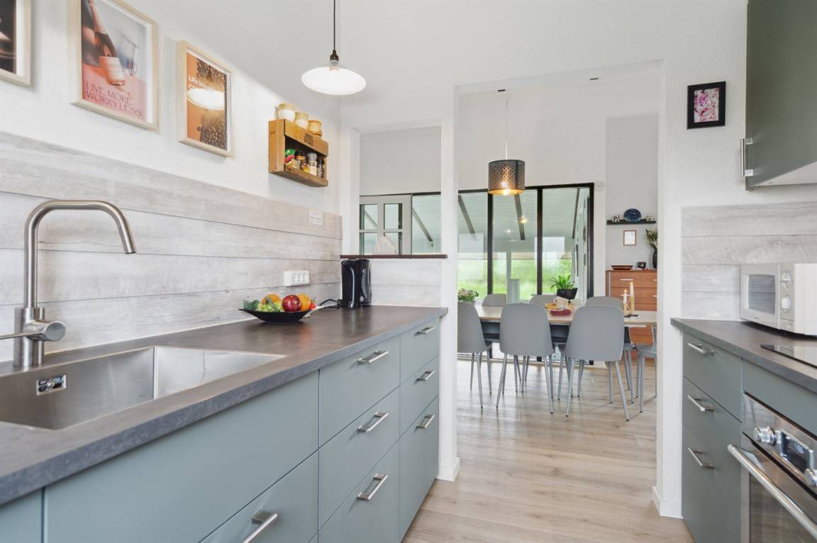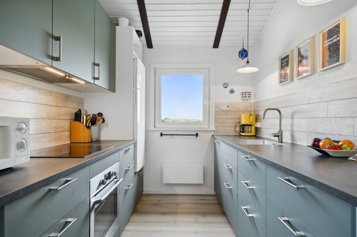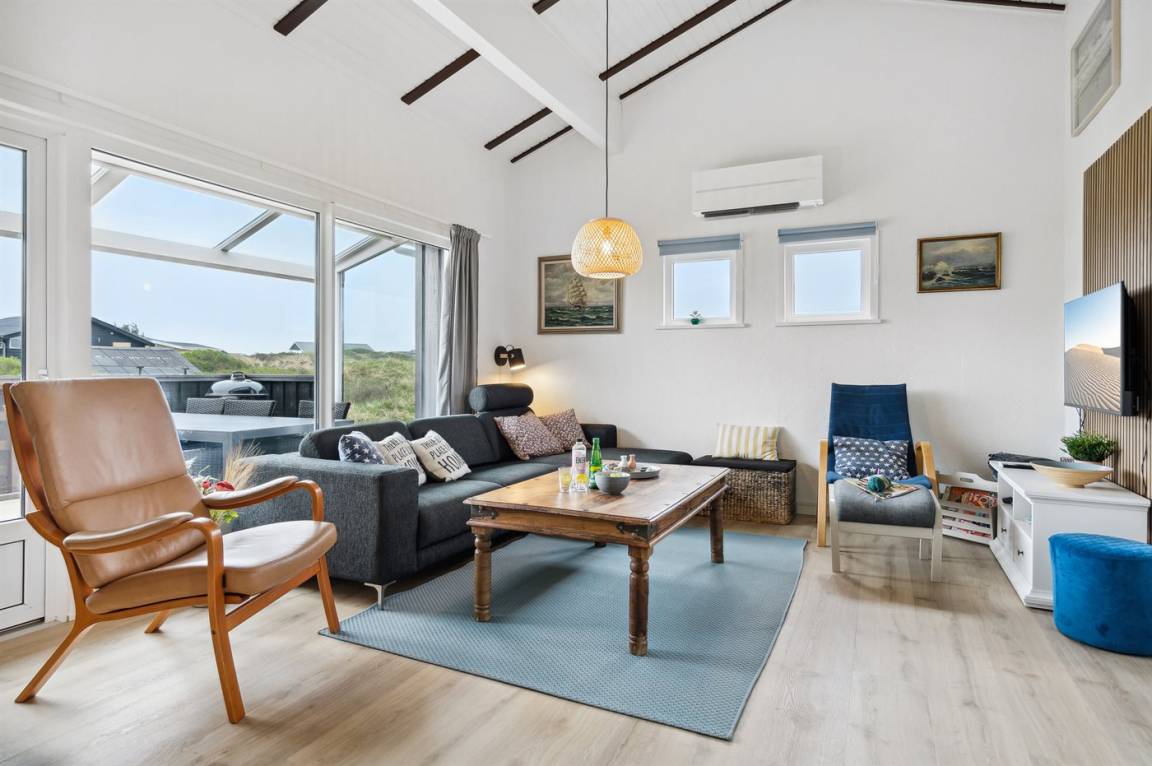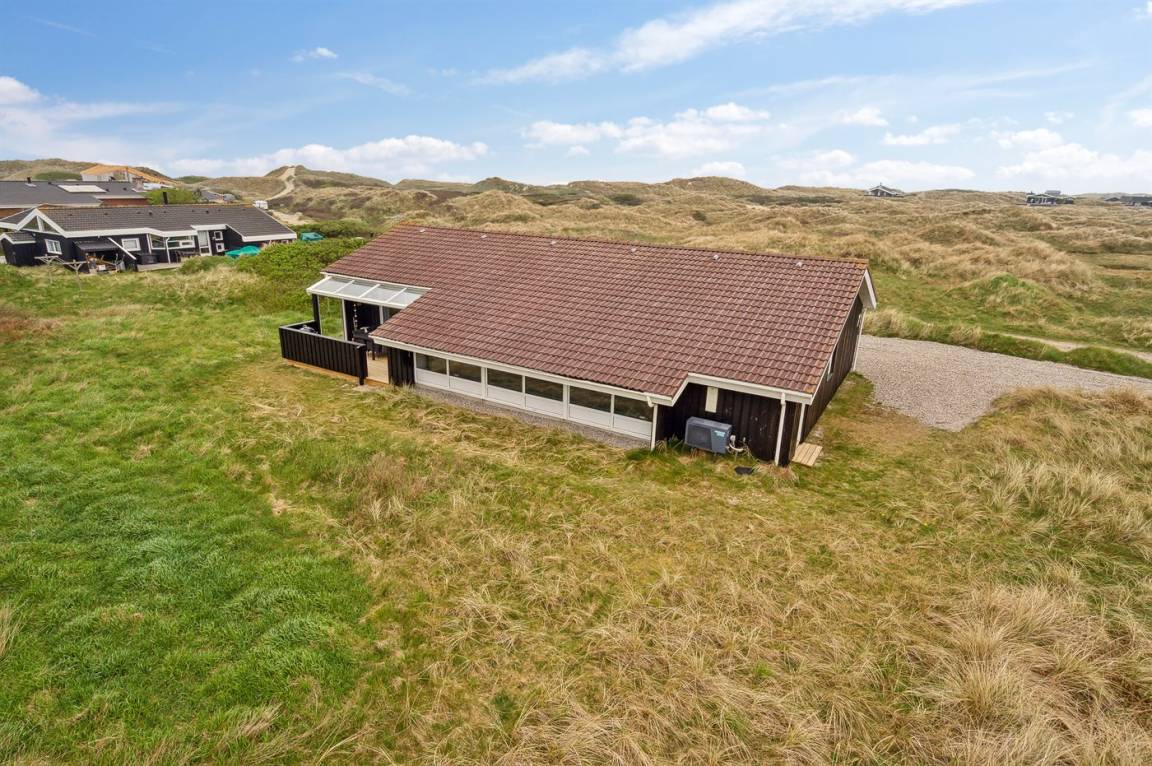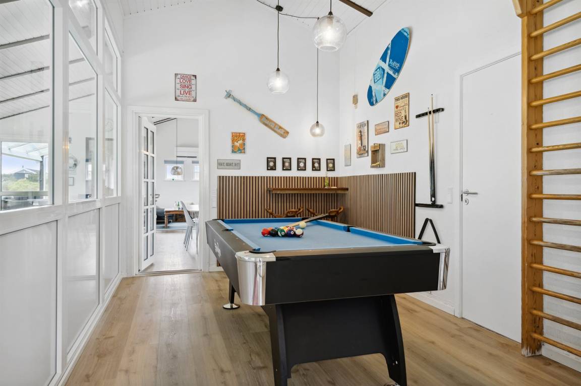 Ein schönes Poolhaus im beliebten Feriengebiet Grønhøj. Genieße ein Glas Wein oder eine Tasse Kaffee auf der überdachten Terrasse - bei jedem Wetter. Nach einem langen Spaziergang am Meer kannst du es dir anschließend mit einem guten Buch gemütlich machen oder die Familie bei einem Spiel Karten herausfordern.