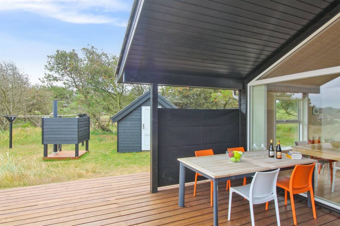 DraußenDie Ferienunterkunft liegt auf einem 2800 m² großen Naturgrundstück. Die Entfernung zum Meer beträgt 500 m. Die nächste Einkaufsmöglichkeit liegt 2000 m entfernt. Außerdem gibt es 18 m² überdachte Terrasse. Es steht ein offenes Terrassenareal zur Verfügung. Schaukel. Außendusche. Es steht ein Gasgrill zur Verfügung. Parkplatz auf dem Grundstück.