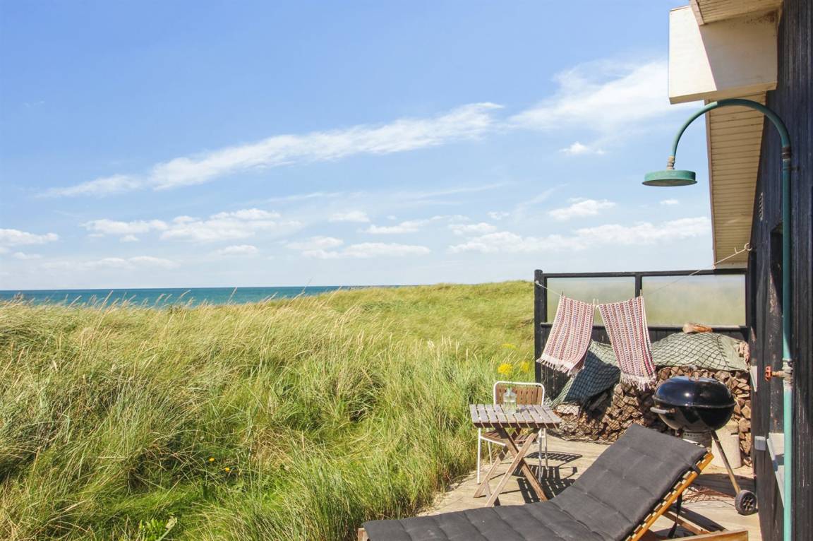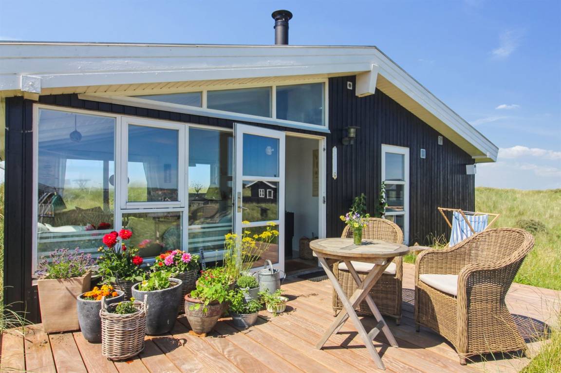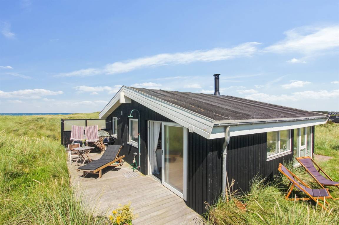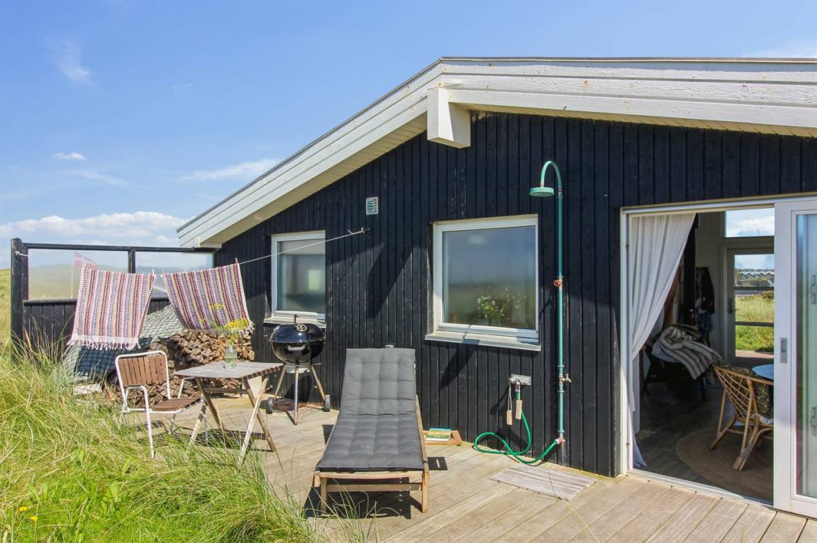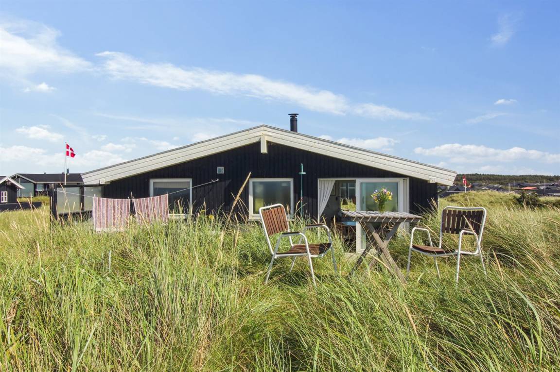 DraußenDie Ferienunterkunft liegt auf einem 1000 m² großen Dünengrundstück. Die Entfernung zum Meer beträgt 100 m. Die nächste Einkaufsmöglichkeit liegt 1200 m entfernt. Es steht ein 20 m² Terrassenareal zur Verfügung. Außendusche.