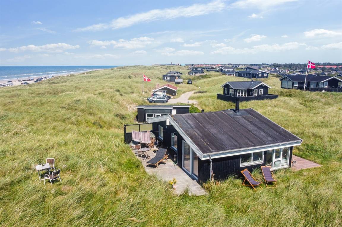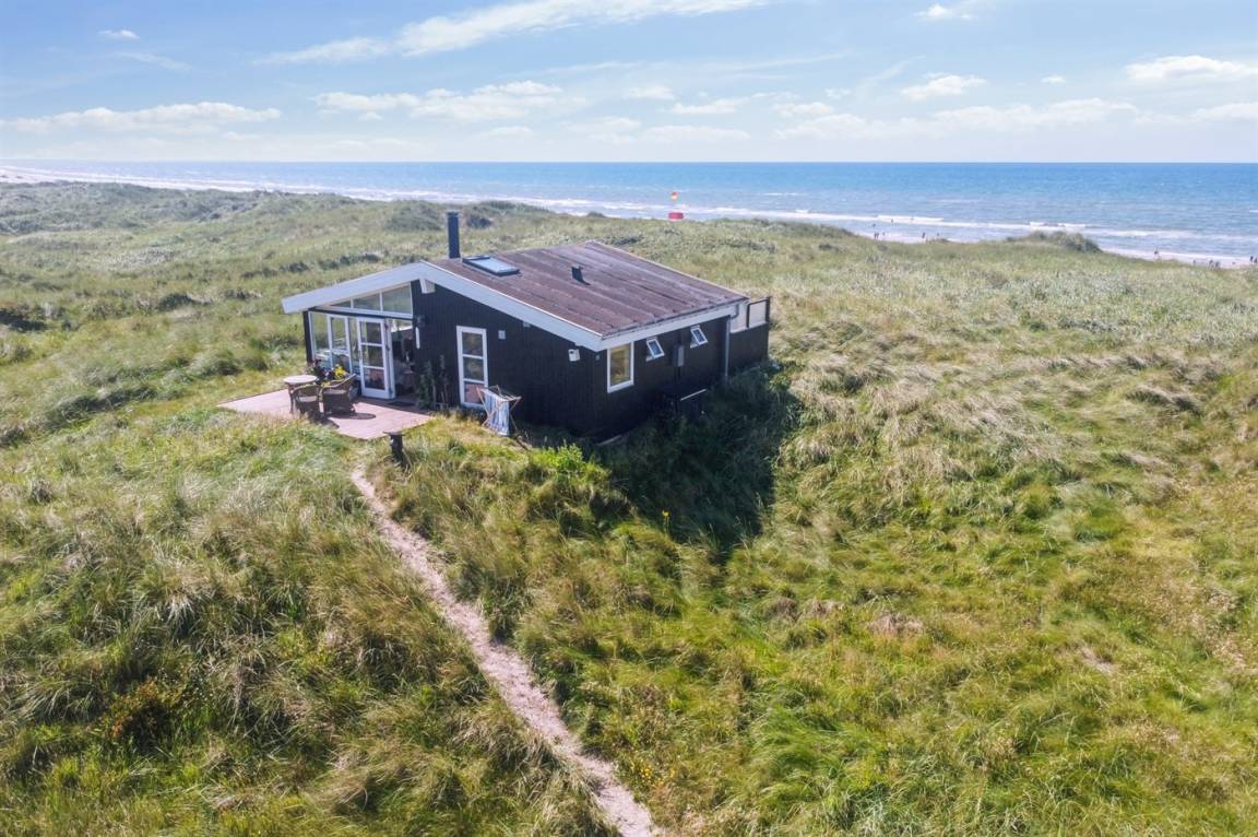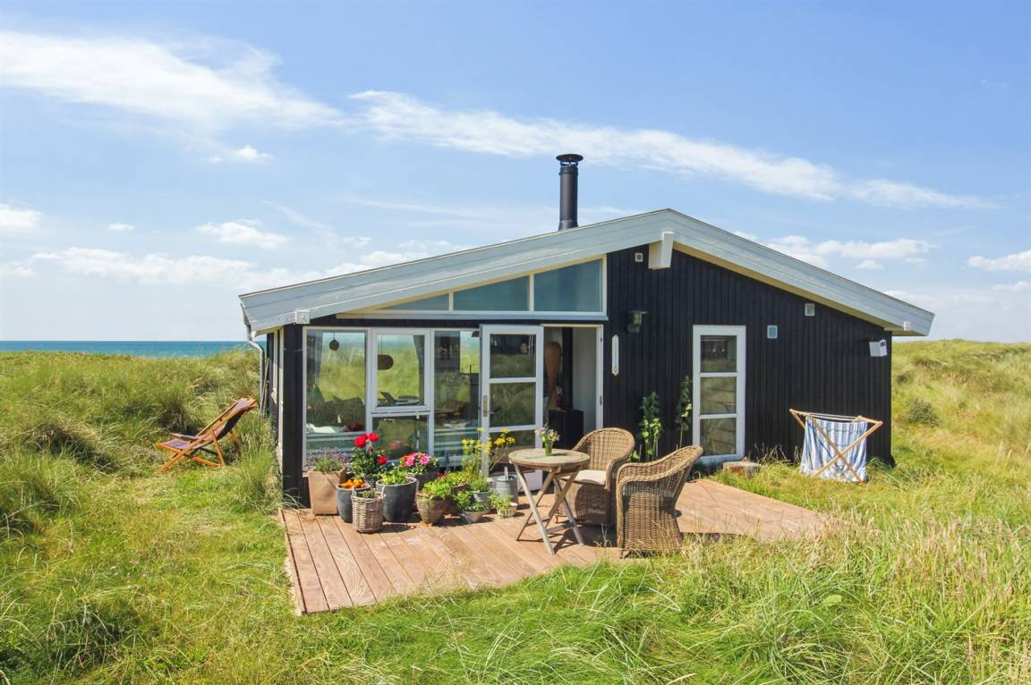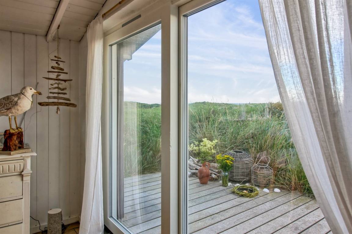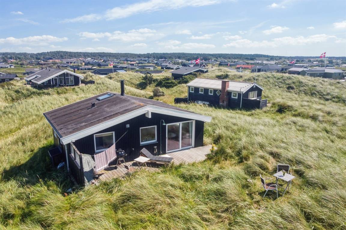 DraußenDie Ferienunterkunft liegt auf einem 1000 m² großen Dünengrundstück. Die Entfernung zum Meer beträgt 100 m. Die nächste Einkaufsmöglichkeit liegt 1200 m entfernt. Es steht ein 20 m² Terrassenareal zur Verfügung. Außendusche.
