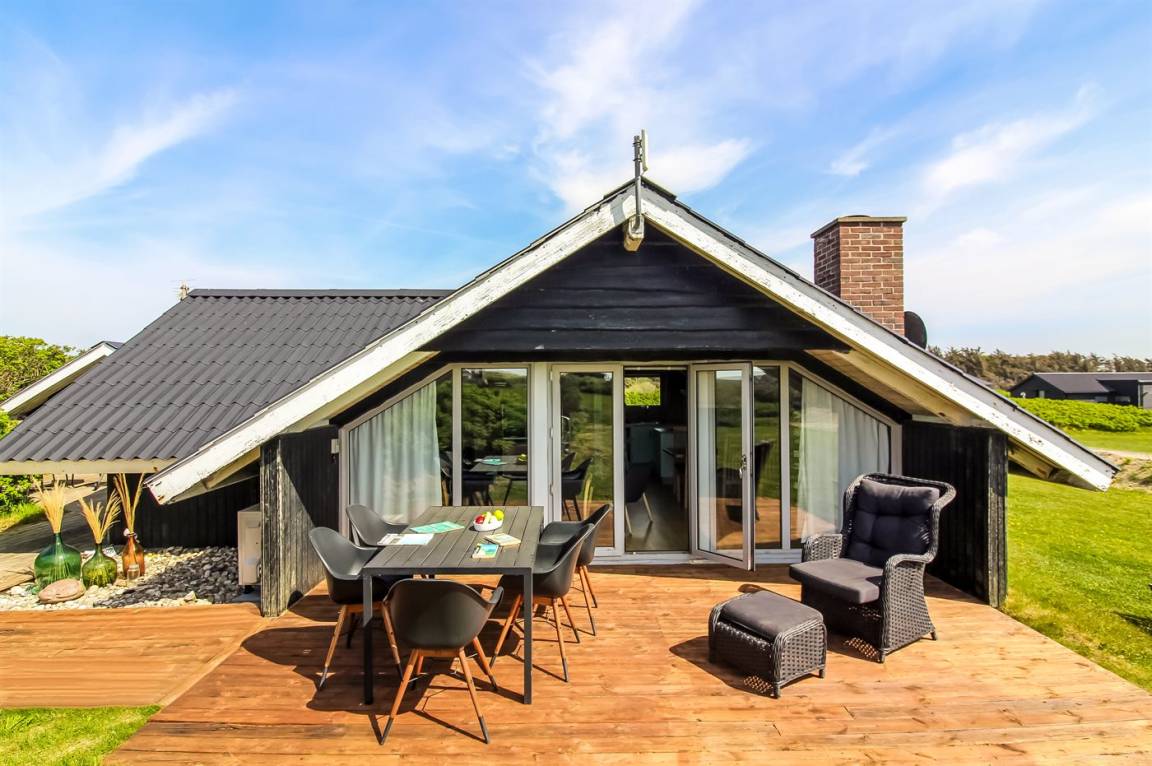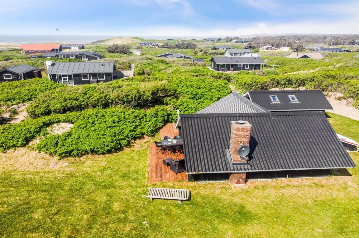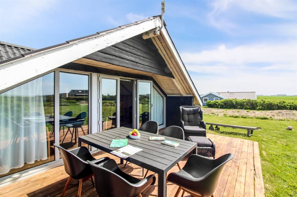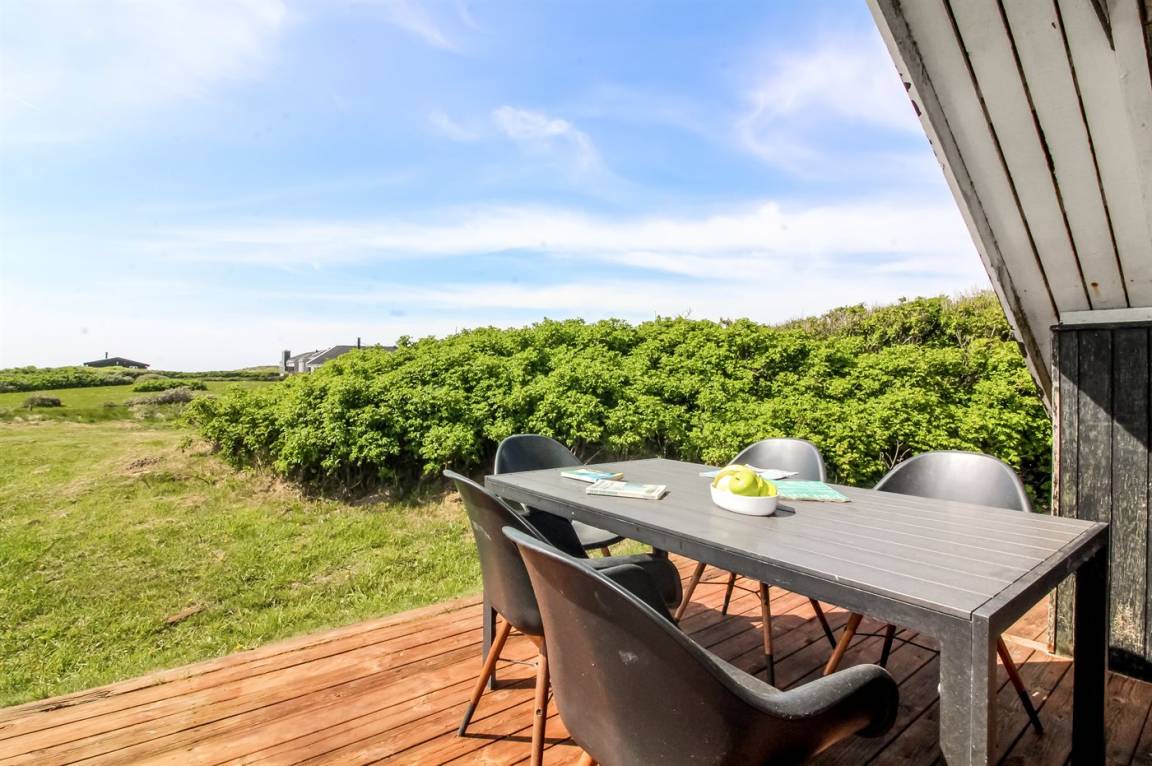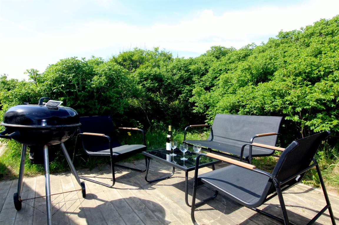 Es gibt sowohl nach Norden und Westen ausgerichtete Terrassen, und an sonnigen Tagen findest du bestimmt ein windgeschütztes Plätzchen, wo du eine Tasse Tee oder Kaffee genießen und einfach entspannen kannst. Wenn du die Aussicht genießen möchtest, hat der Eigentümer einen kleinen Aussichtsplatz in der Düne angelegt – dort kannst du den herrlichen Blick über die Landschaft und das Meer auf dich einwirken lassen.