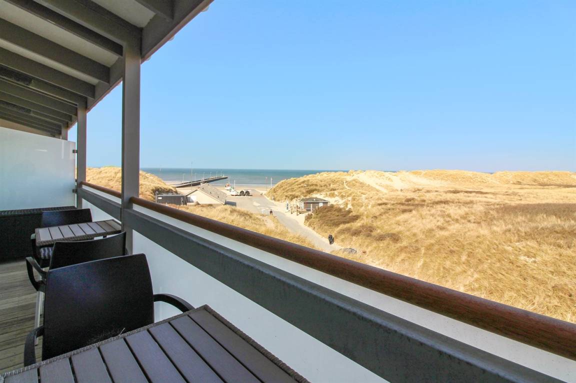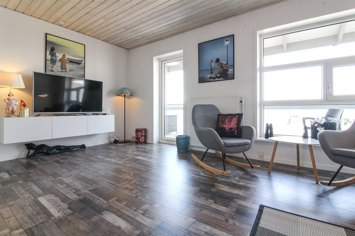 Gut gelegene Ferienwohnung mit Meeresblick sowohl vom Wohnzimmer als auch vom Balkon. Die Wohnung liegt in der Mitte von Løkken und sehr nahe am Strand der Nordsee.