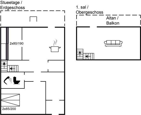 SchlafverhältnisseDie Schlafplätze verteilen sich auf 2 Schlafräume. 2 Schlafplätze in einem Doppelbett. 4 Schlafplätze in Etagenbetten.