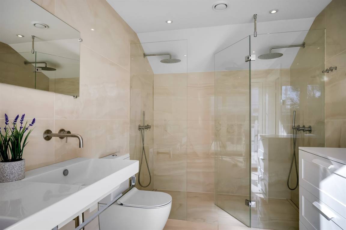 WC und BadEs gibt 2 Badezimmer mit Duschnische und 3 Toiletten, davon 1 Gästetoilette. Fußbodenheizung in 2 Badezimmern. Fußbodenheizung in der Gästetoilette.