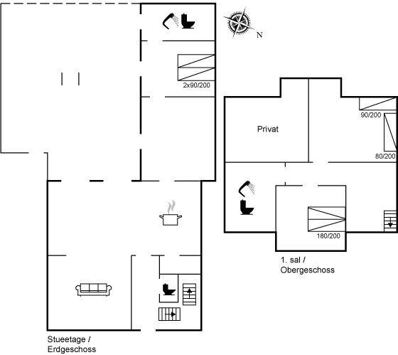 EinrichtungDas Ferienhaus eignet sich für 6 Personen sowie 1 Kleinkind bis zu 3 Jahren. Die Ferienunterkunft hat eine Wohnfläche von 164 m², ist 2-stöckig, und wurde 1918 gebaut. 2022 wurde die Ferienunterkunft teilweise renoviert. Haustiere dürfen nicht mitgebracht werden. Fußbodenheizung im Wohnzimmer. Fußbodenheizung in der Diele. Fußbodenheizung im Flur. Die Ferienunterkunft ist mit Waschmaschine ausgestattet. Wäschetrockner. Tiefkühlmöglichkeit mit 120 Liter Nutzinhalt. Für die jüngsten Feriengäste ist 1 Kinderhochstuhl vorhanden.
