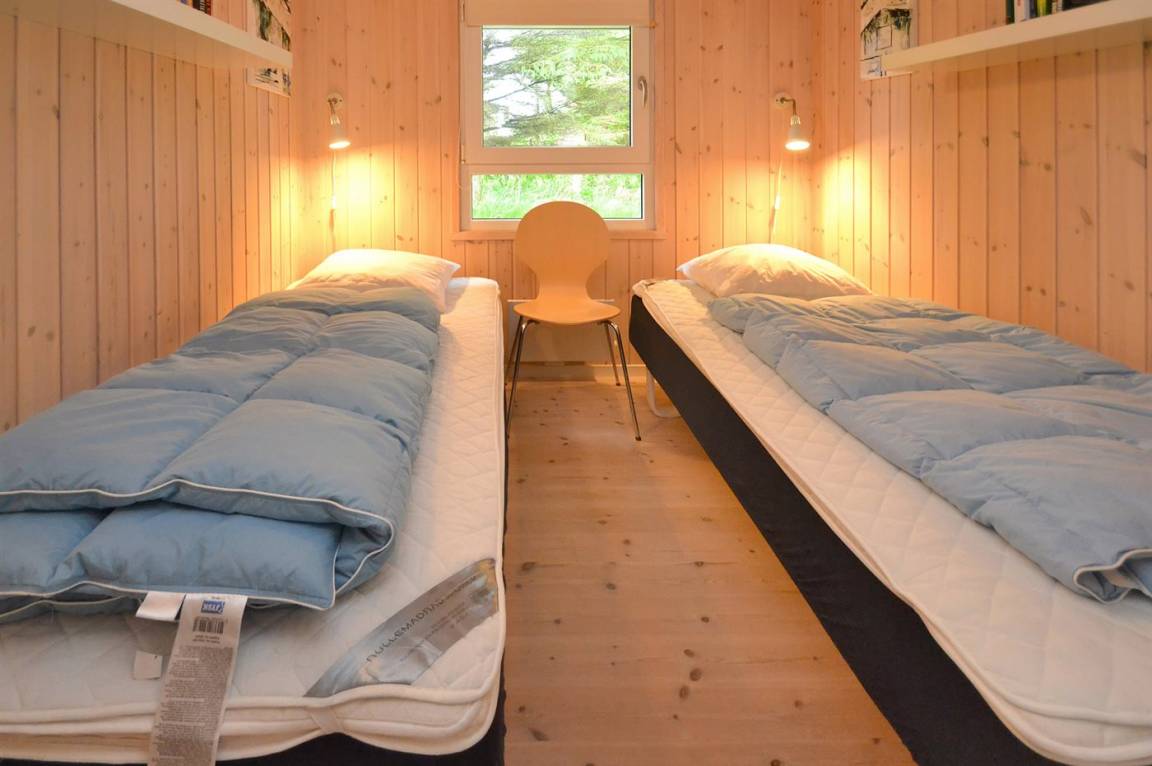 Es gibt 3 Schlafzimmer und die Schlafplätze verteilen sich auf ein Zimmer mit Doppelbett und 2 Zimmer mit je 2 Einzelbetten. Das Haus verfügt außerdem über ein offenes Obergeschoss mit 2 Matratzen.