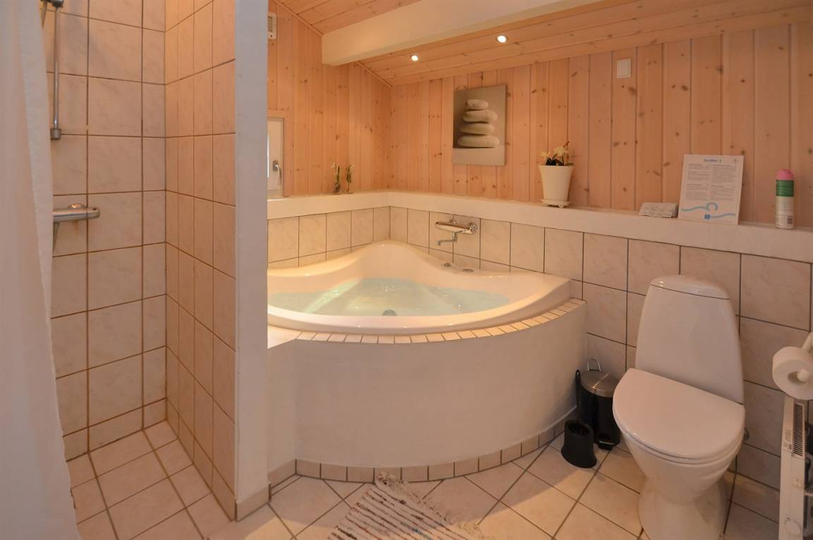Es gibt 1 Badezimmer mit Fußbodenheizung, Toilette, Duschnische, Whirlpool und Sauna. Zusätzlich gibt es 1 Gästetoilette ebenfalls mit Fußbodenheizung.