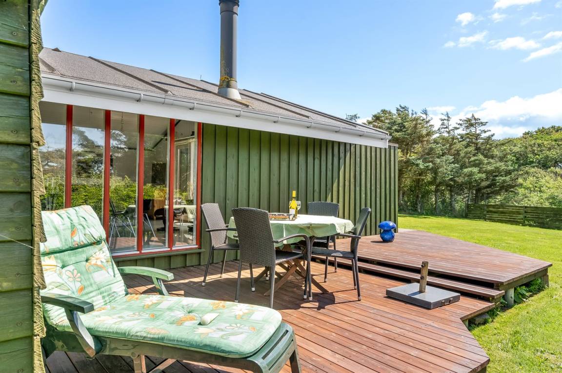 DraußenDie Ferienunterkunft liegt auf einem 1500 m² großen Naturgrundstück. Das Grundstück ist eingezäunt. Die Entfernung zum Meer beträgt 600 m. Die nächste Einkaufsmöglichkeit liegt 400 m entfernt. Es steht ein offenes Terrassenareal zur Verfügung. Außerdem gibt es überdachte Terrasse. Geräteraum. Es steht ein Grill zur Verfügung. Parkplatz auf dem Grundstück.