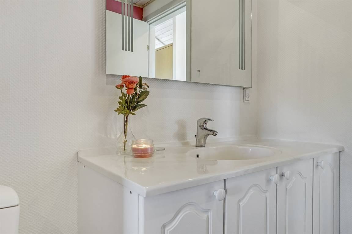 „Advice to other guests: Der er en dejlig stor græsplæne, så hvis man har børn, så er det oplagt til udendørs aktivitet, så husk legeredskaber. Der er ikke langt til stranden, men man skal ikke være gangbesværet. Der er en fin trappe, som er lidt stejl. The vacation at the holiday home: Vinduerne var møgbeskidte. Man kunne vitterlig ikke se ud af dem. Men med lidt tovtrækkeri, kom der en vinduespudser på. The local office: Det er igen om de beskidte vinduer. Først ved 2 henvendelse skete der noget aktivt.“