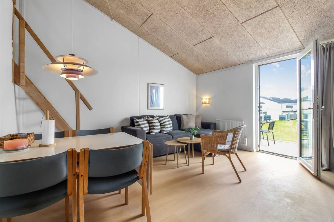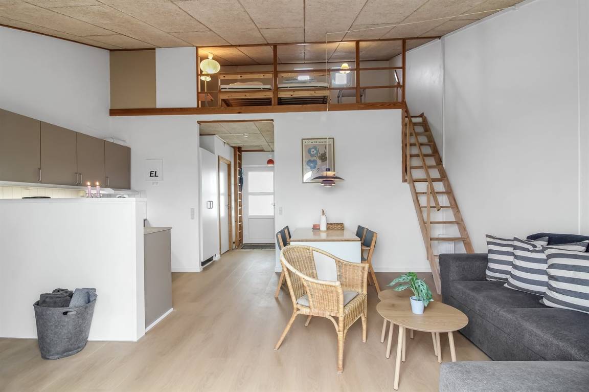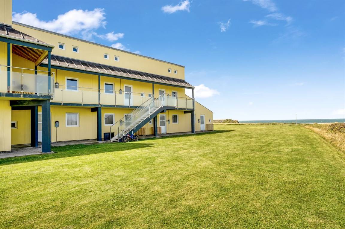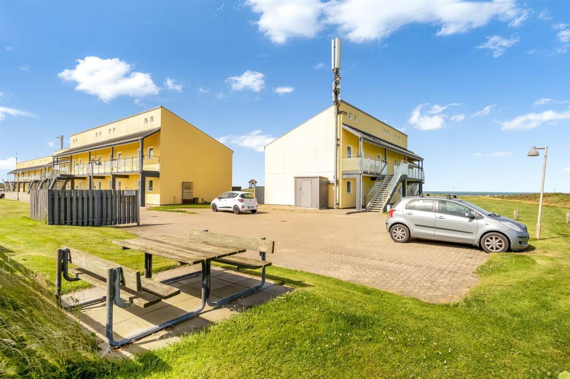 Ferienwohnung in Nr. Lyngby, ein schönes Ferienhausgebiet an der Westküste zwischen Løkken und Lønstrup. Nr. Lyngby ist für ihr Steilufer und den schönen Sandstrand bekannt. Zur Ferienanlage gehört ein gemeinsamer Swimmingpool sowie ein Kinderpool. Der Swimmingpool liegt auf dem großen, gemeinsamen Rasen und kann von Woche 26-34 benutzt werden. Guter Spielplatz für die Kinder auf dem Gemeinschaftsareal. Im Gemeinschaftsgebäude stehen Waschmaschinen und Wäschetrockner kostenlos zur Verfügung. Die Wohnung befindet sich im 1. Stock. An den schönen Sommerabenden können Sie den Sonnenuntergang genießen. Sowohl von der Wohnung als auch vom Grundstück gibt es eine prachtvolle Aussicht über das Wasser und die Küste. Offenes Obergeschoss mit 2 Schlafplätzen.
