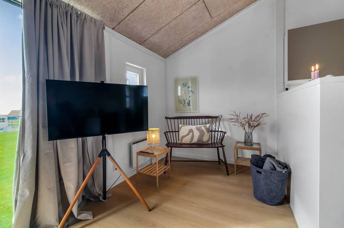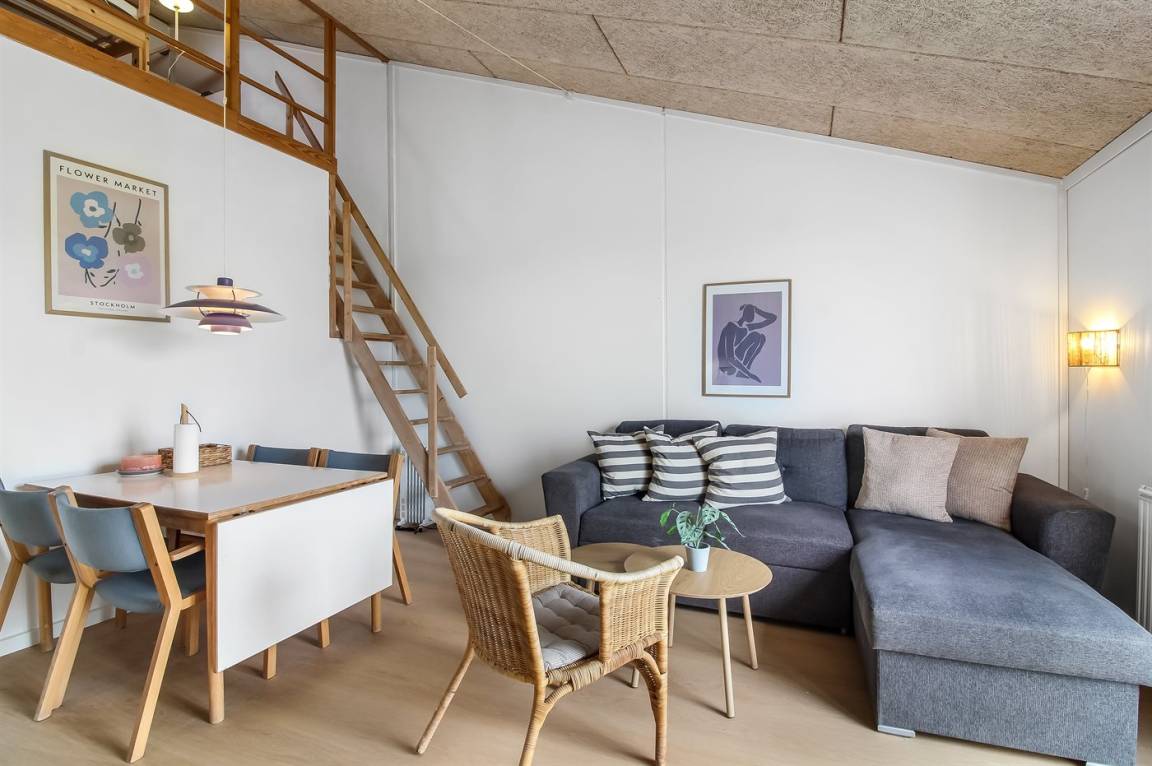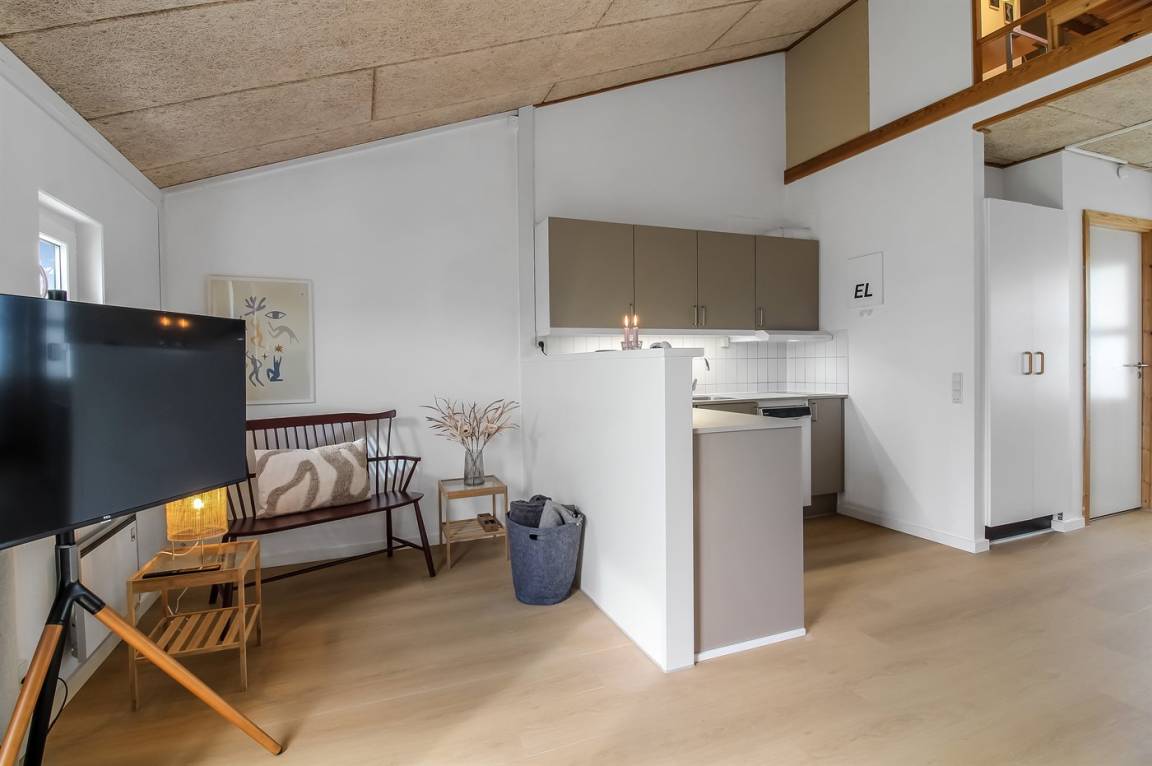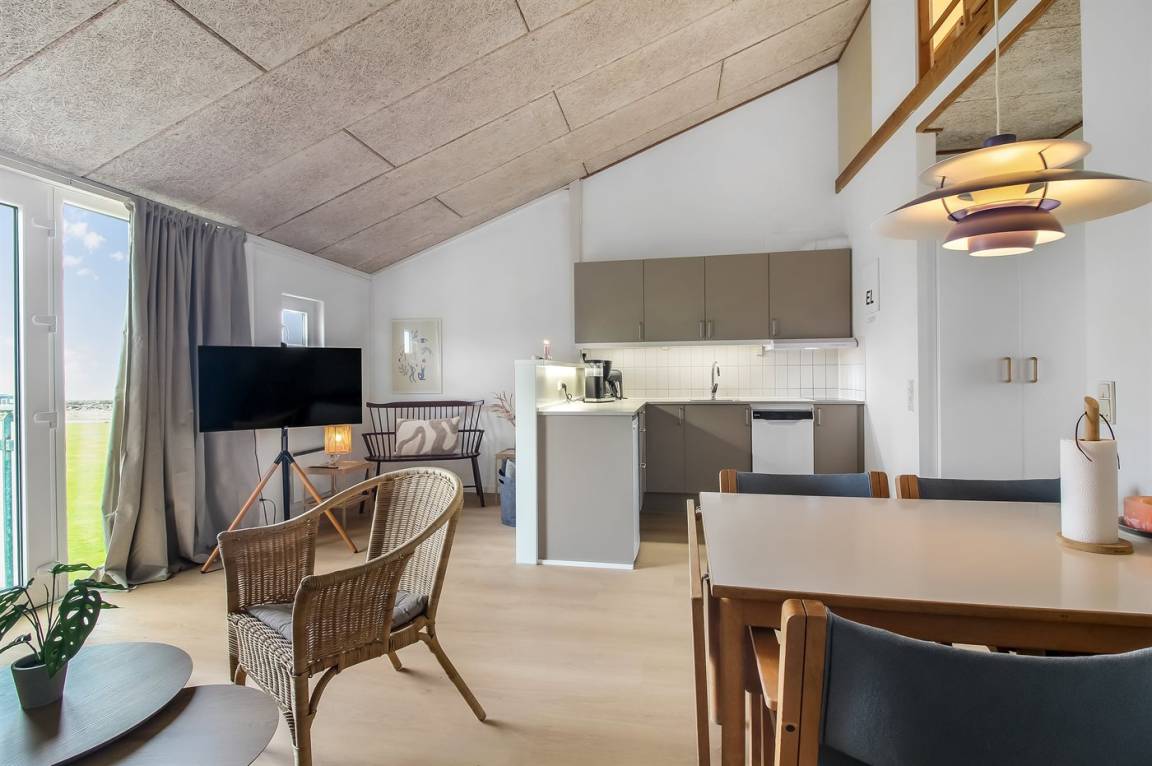 Ferienwohnung in Nr. Lyngby, ein schönes Ferienhausgebiet an der Westküste zwischen Løkken und Lønstrup. Nr. Lyngby ist für ihr Steilufer und den schönen Sandstrand bekannt. Zur Ferienanlage gehört ein gemeinsamer Swimmingpool sowie ein Kinderpool. Der Swimmingpool liegt auf dem großen, gemeinsamen Rasen und kann von Woche 26-34 benutzt werden. Guter Spielplatz für die Kinder auf dem Gemeinschaftsareal. Im Gemeinschaftsgebäude stehen Waschmaschinen und Wäschetrockner kostenlos zur Verfügung. Die Wohnung befindet sich im 1. Stock. An den schönen Sommerabenden können Sie den Sonnenuntergang genießen. Sowohl von der Wohnung als auch vom Grundstück gibt es eine prachtvolle Aussicht über das Wasser und die Küste. Offenes Obergeschoss mit 2 Schlafplätzen.