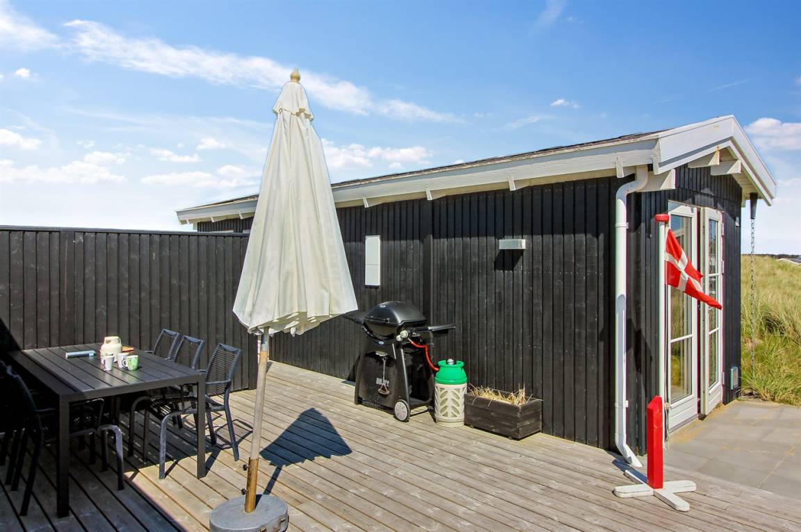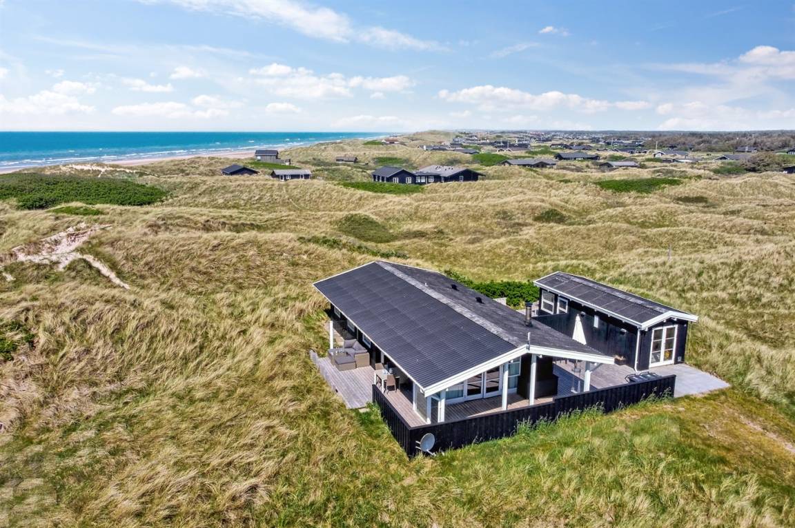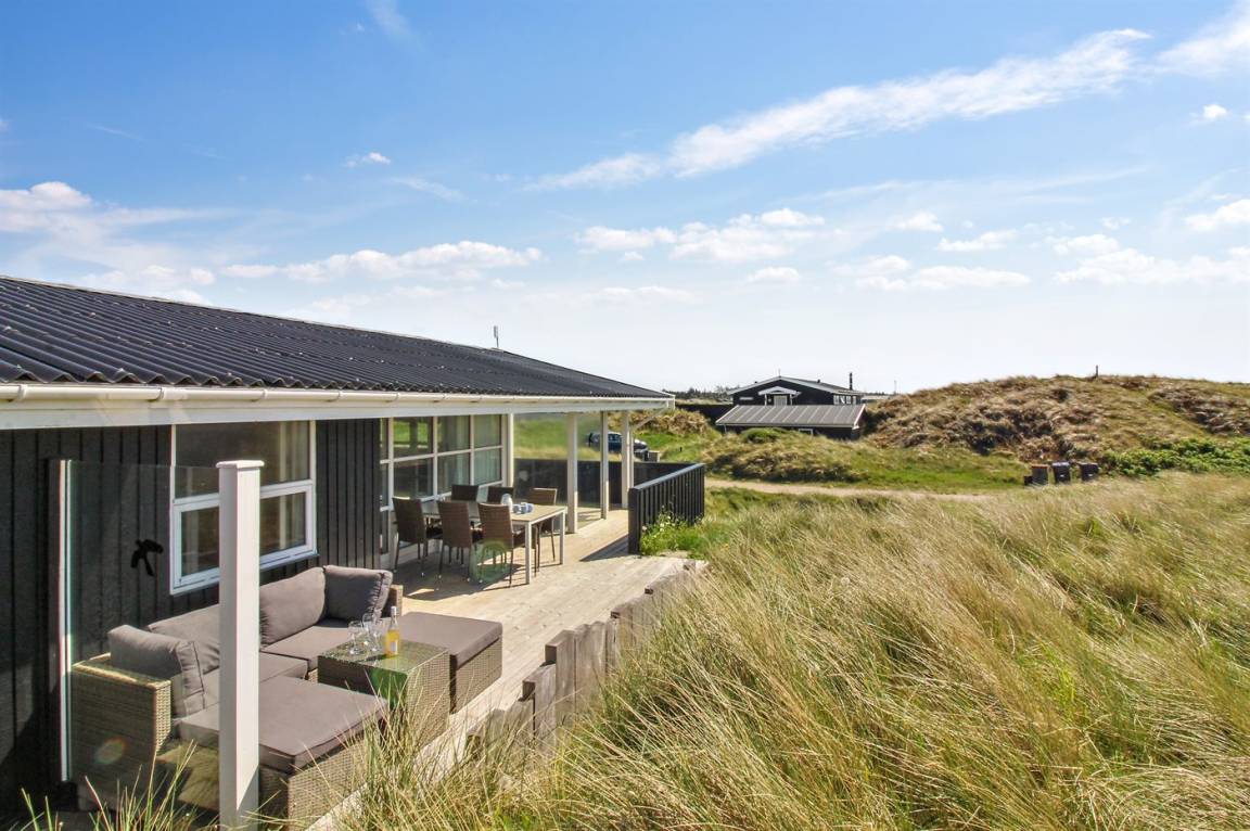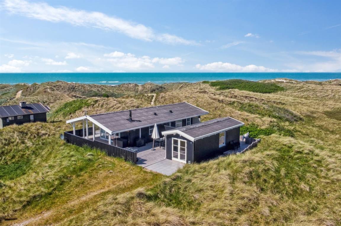 In der Dünenlandschaft südlich von Løkken finden Sie dieses Ferienhaus, laufend renoviert. Zwischen den Dünen gibt es einen Fußweg zum Wasser sowie einen Natursandkasten. Zum Haus gehört ein großer abgeschirmter nach Südosten gerichteter Sonnenhof und nach Südwesten gerichtete, überdachte Terrasse mit diversen Gartenmöbeln. Besonders vom Grundstück haben Sie eine schöne Aussicht über die Dünen, das Ferienhausgebiet und die umgebene Landschaft.