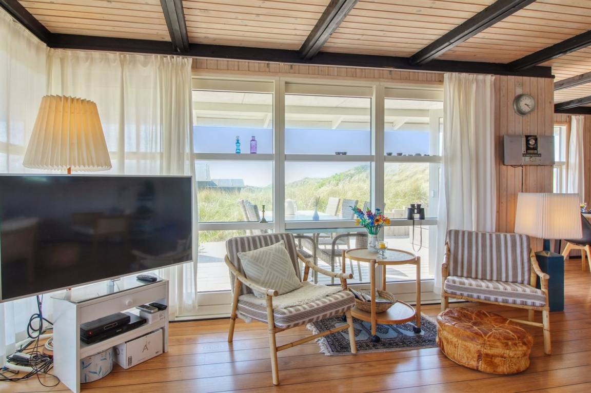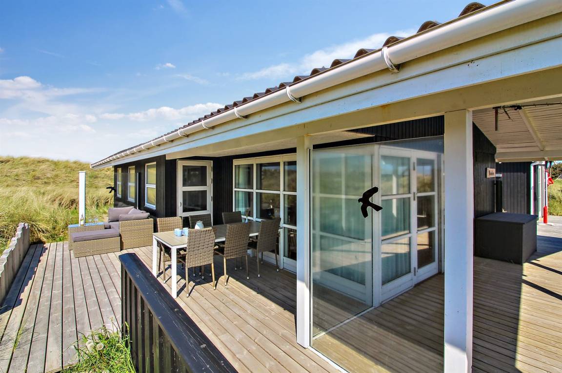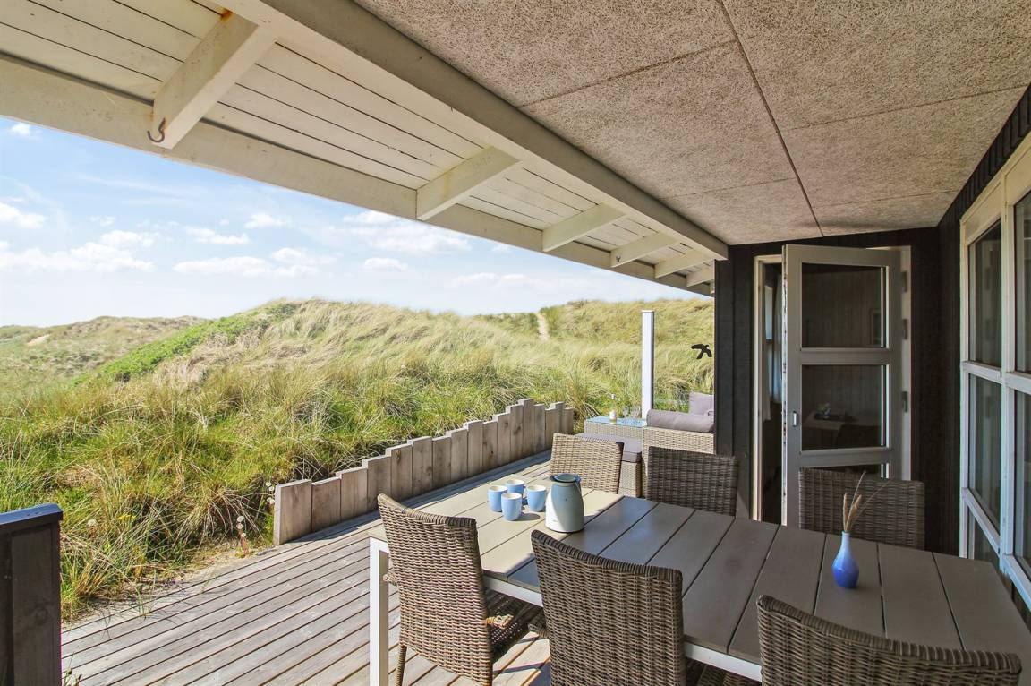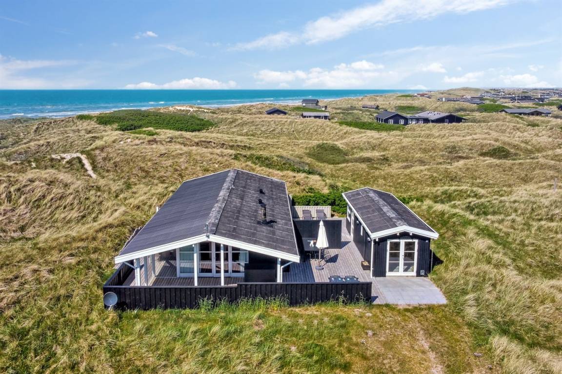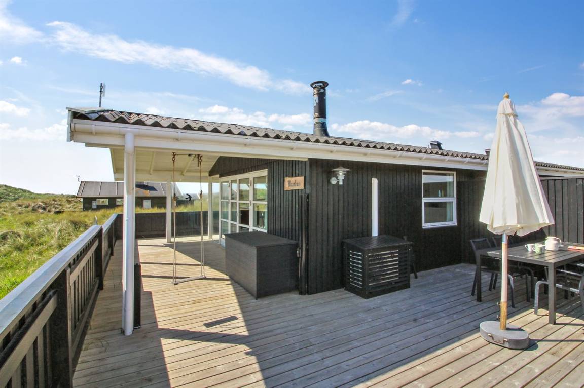 DraußenDie Ferienunterkunft liegt auf einem 1200 m² großen Dünengrundstück.Naturgrundstück. Die Entfernung zum Meer beträgt 140 m. Die nächste Einkaufsmöglichkeit liegt 1000 m entfernt. Es steht ein 50 m² Terrassenareal zur Verfügung. Außerdem gibt es 14 m² überdachte Terrasse. Geräteraum. Schaukel. Außendusche. Parkplatz auf dem Grundstück.