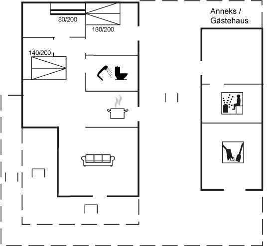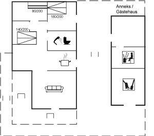 EinrichtungDas Ferienhaus eignet sich für 6 Personen sowie 1 Kleinkind bis zu 3 Jahren. Die Ferienunterkunft hat eine Wohnfläche von 80 m² und wurde 1981 gebaut. 2014 wurde die Ferienunterkunft teilweise renoviert. Haustiere dürfen nicht mitgebracht werden. Die Ferienunterkunft ist mit Waschmaschine ausgestattet. Tiefkühlmöglichkeit mit 45 Liter Nutzinhalt. Es gibt außerdem einen Kaminofen. Für die jüngsten Feriengäste ist 1 Kinderhochstuhl vorhanden.