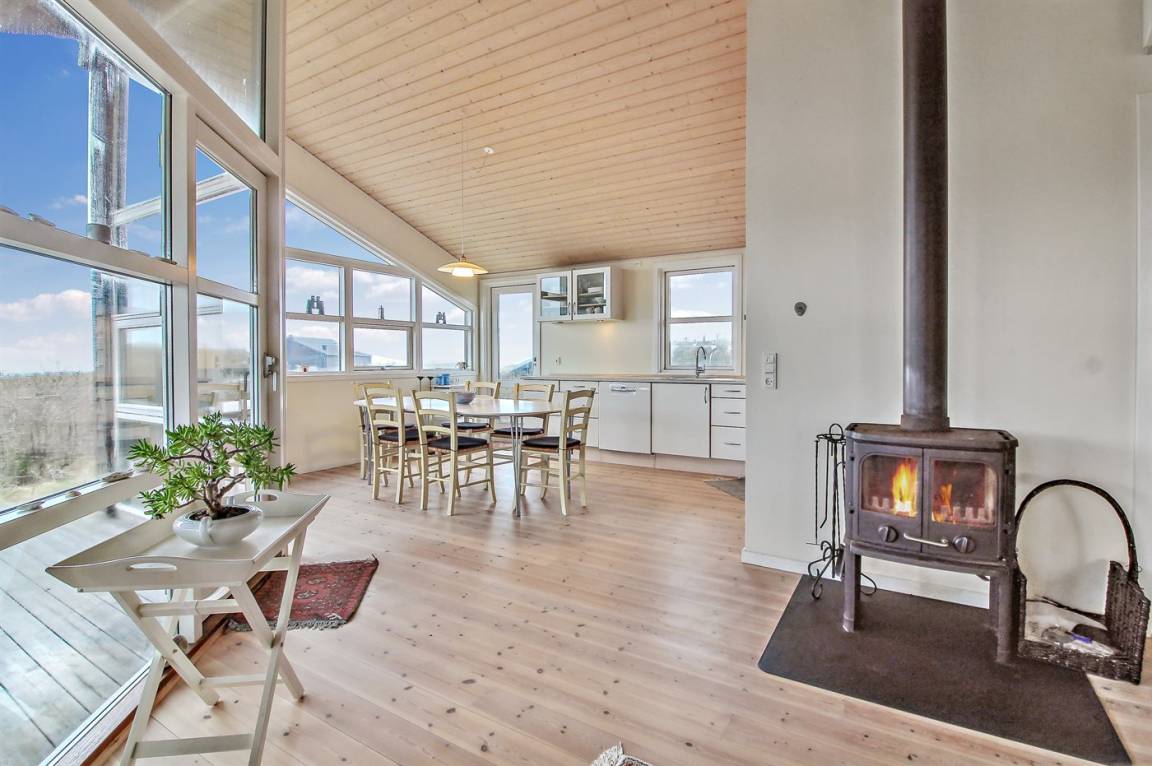 „The vacation at the holiday home: Vejledning til wi fi var uklar. Der mangler vejledning til brug af varmepumpe. Og generel vejledning til området. En husmappe. Praktiske informationer. Upraktisk med store sten i indkørslen og kedeligt med et hul i jorden. Cleanliness: Ja der var meget beskidt i badeværelset især i brusekabinen. Og vinduerne var ikke rene. Der var ikke støvsuget i soveværelset. The holiday home itself: Fin rumfordeling. Et dejligt hus med fint lysindfald og god udsigt. Der mangler gardiner/persienner eller lignende til soverum. Man vågner ved måneskin. Fint hvis man fik 2 nøgler istedet for 1. Det er upraktisk at huset skal låses indefra med nøgle.“