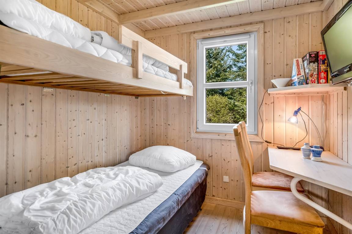 „The vacation at the holiday home: Barnesengen trænger til en udskiftning. Især madrassen var slidt. Desuden kunne jeg umiddelbart ikke se om der var grill i de forskellige sommerhuse, medmindre de var på billederne. Det var der i dette tilfælde.“