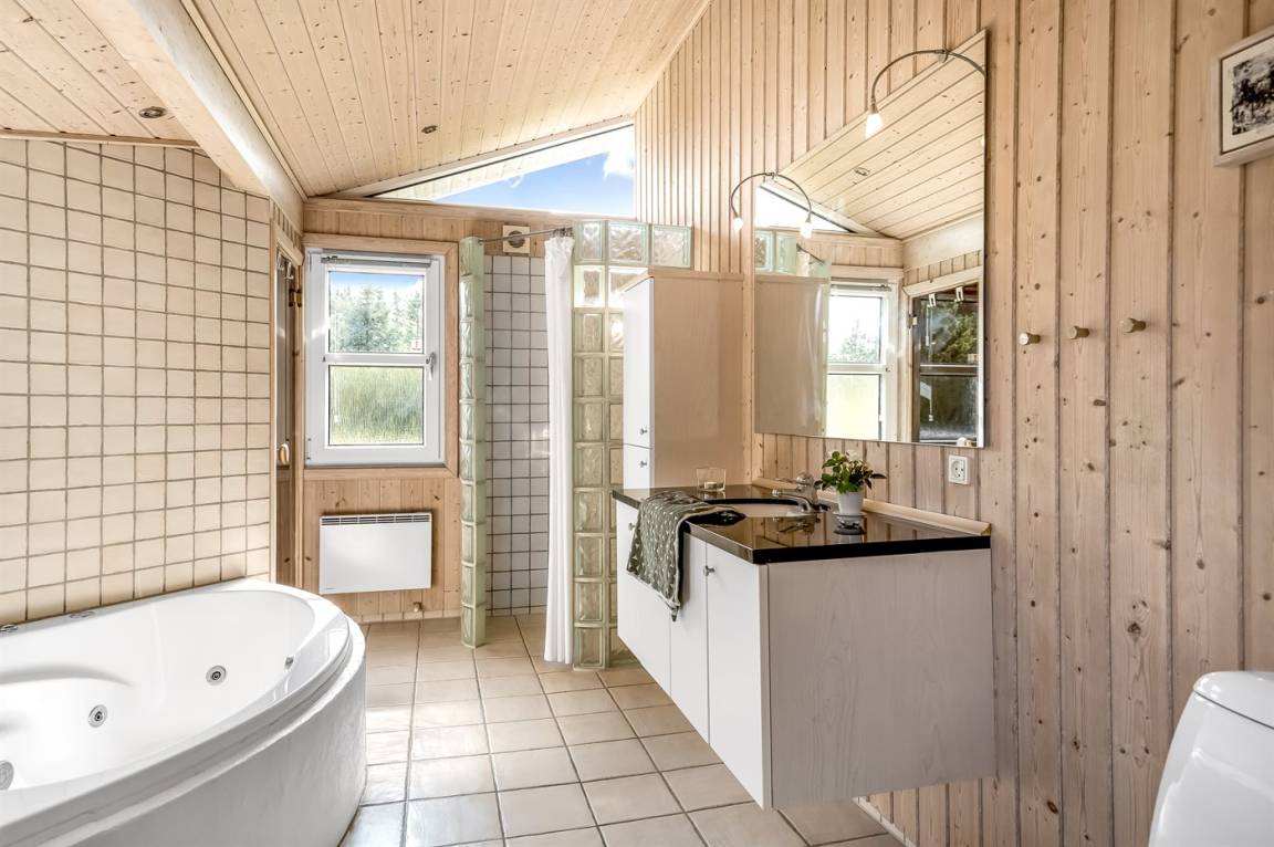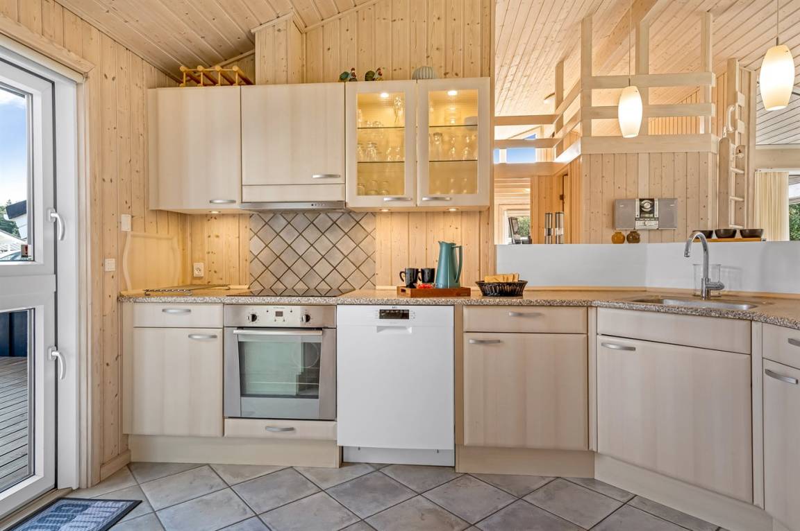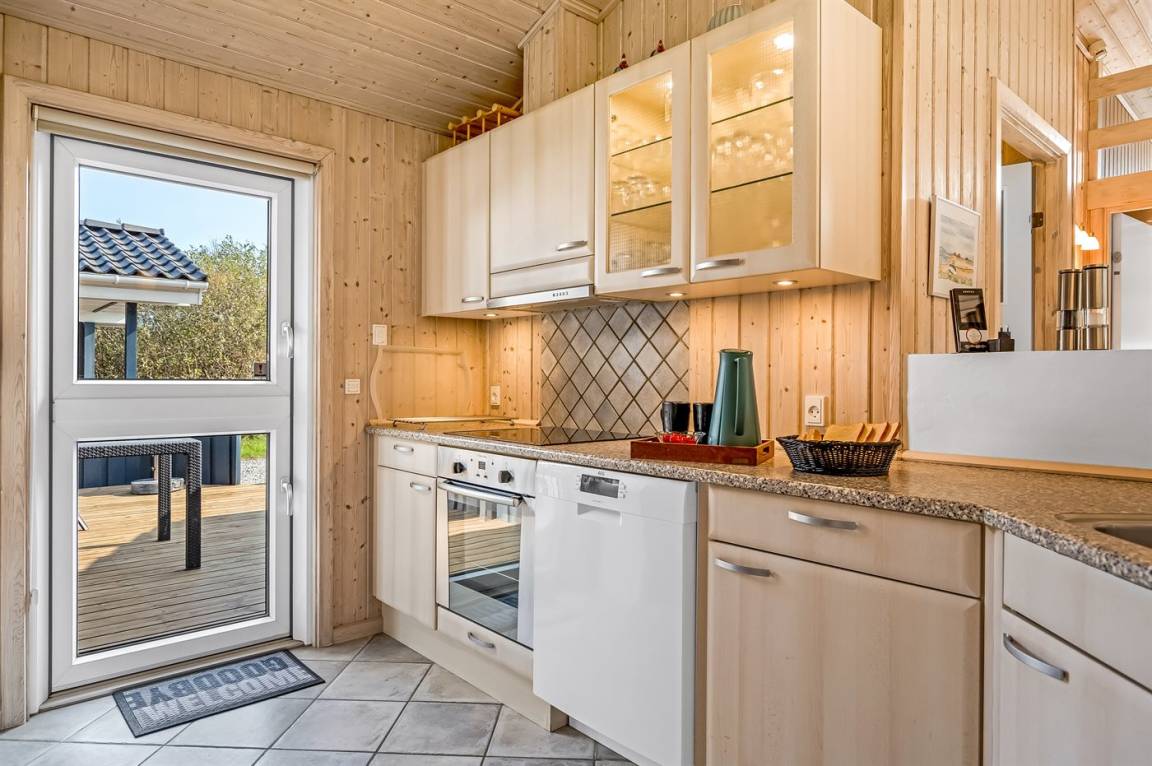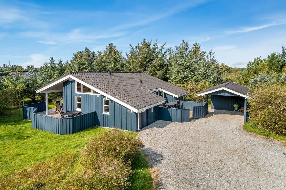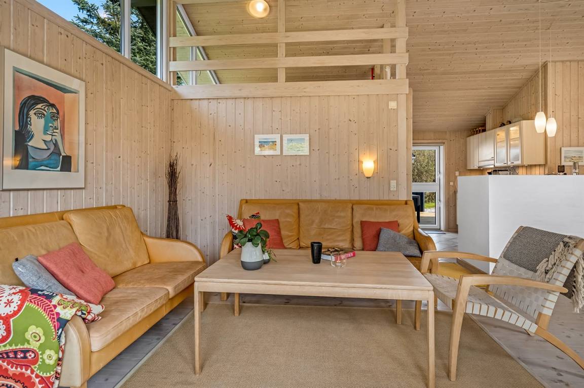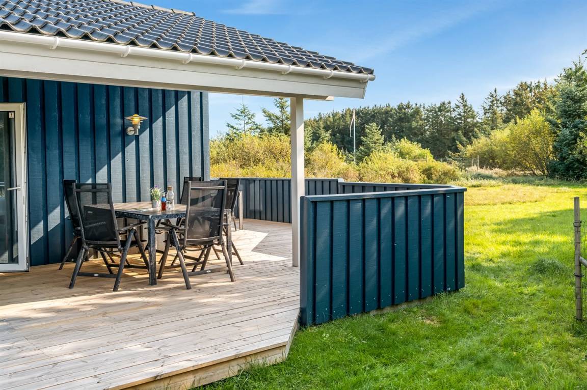 Ein schönes und luxuriöses Ferienhaus aus Holz, 2004 gebaut, in einer Sackgasse gelegen. Zum Haus gehören gute Terrassen mit Windschutzzäunen in Richtung Osten, Süden und Westen. Im Ferienhausgebiet gibt es eine gemeinsame Petanquebahn und Schaukel. Ein wirklich schönes Ferienhaus in einem Gebiet mit vielen Aktivitätsmöglichkeiten. Der Grund ist teilweise eingezäunt.