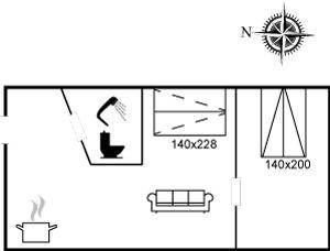 SchlafverhältnisseEs gibt einen Schlafraum. 2 Schlafplätze in einem Doppelbett. Fußbodenheizung in einem der Schlafzimmer.