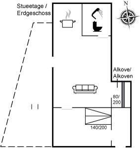 SchlafverhältnisseEs gibt einen Schlafraum. 2 Schlafplätze in einem Doppelbett.2 Schlafplätze im Alkoven.