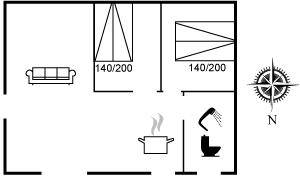 SchlafverhältnisseDie Schlafplätze verteilen sich auf 2 Schlafräume. 4 Schlafplätze in Doppelbetten.