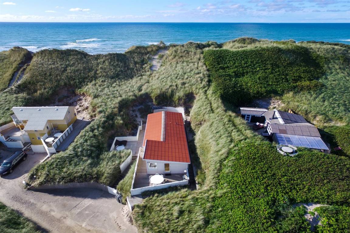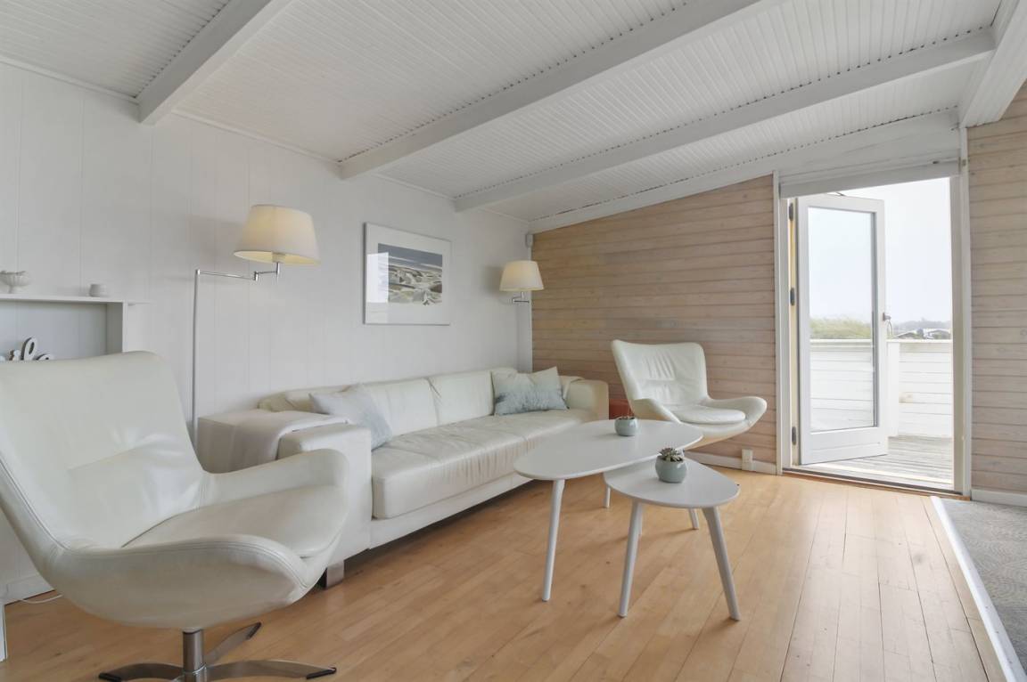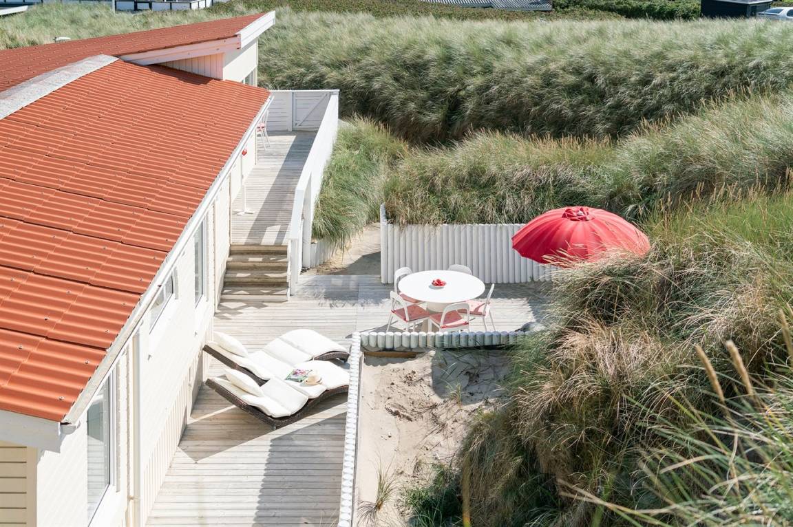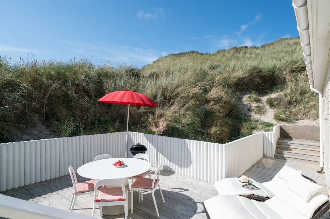 Fahren Sie durch die kleinen Straßen bis zu den hohen Dünen, wo sich dieses wunderschöne Ferienhaus oberhalb der Straße in der extremen Klippe zum Strand und zur Nordsee befindet. Das Haus ist in der Düne gut geschützt vom Westwind, und mit seiner hohen Lage gibt es einen schönen Blick auf das Ferienhaus vom Wohnzimmer. Von der Spitze des Hügels gibt es Meerblick. Zum Haus gehört eine geschlossene Terrasse nach Osten und Süden