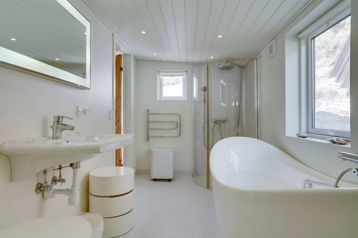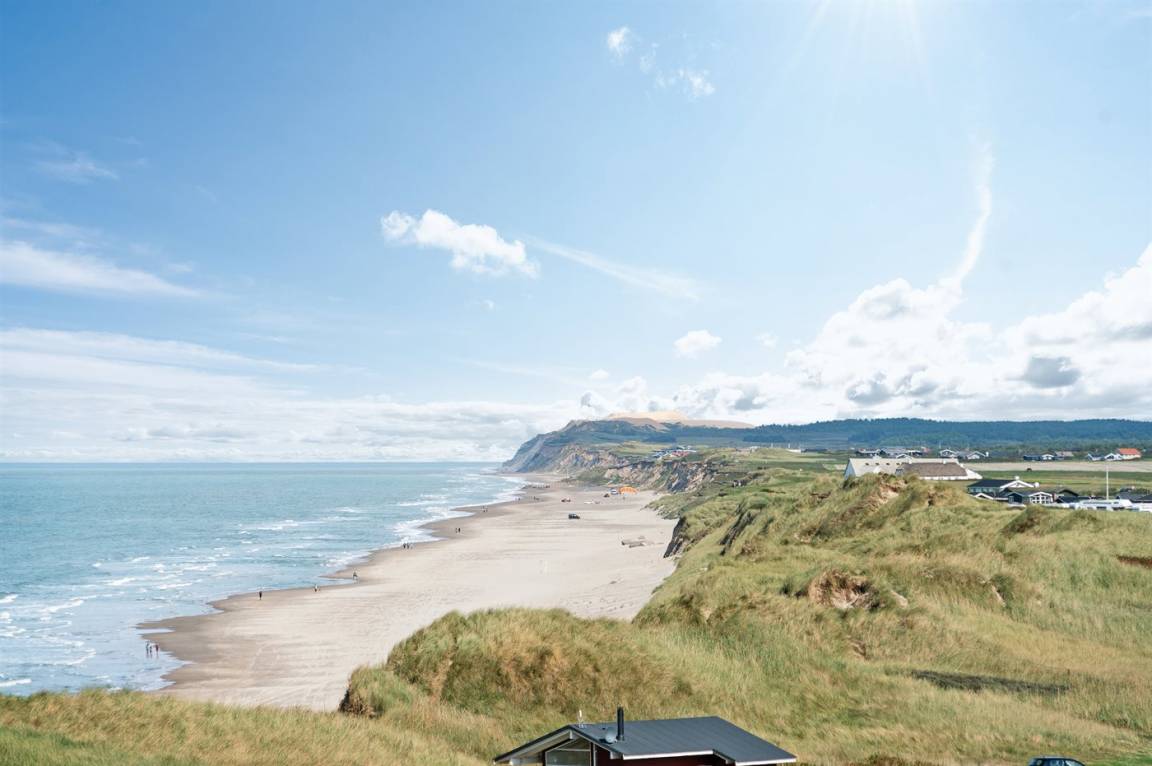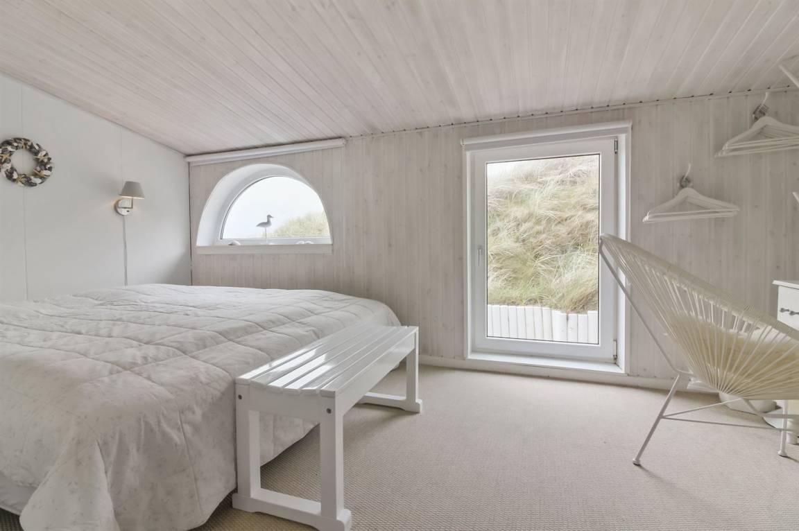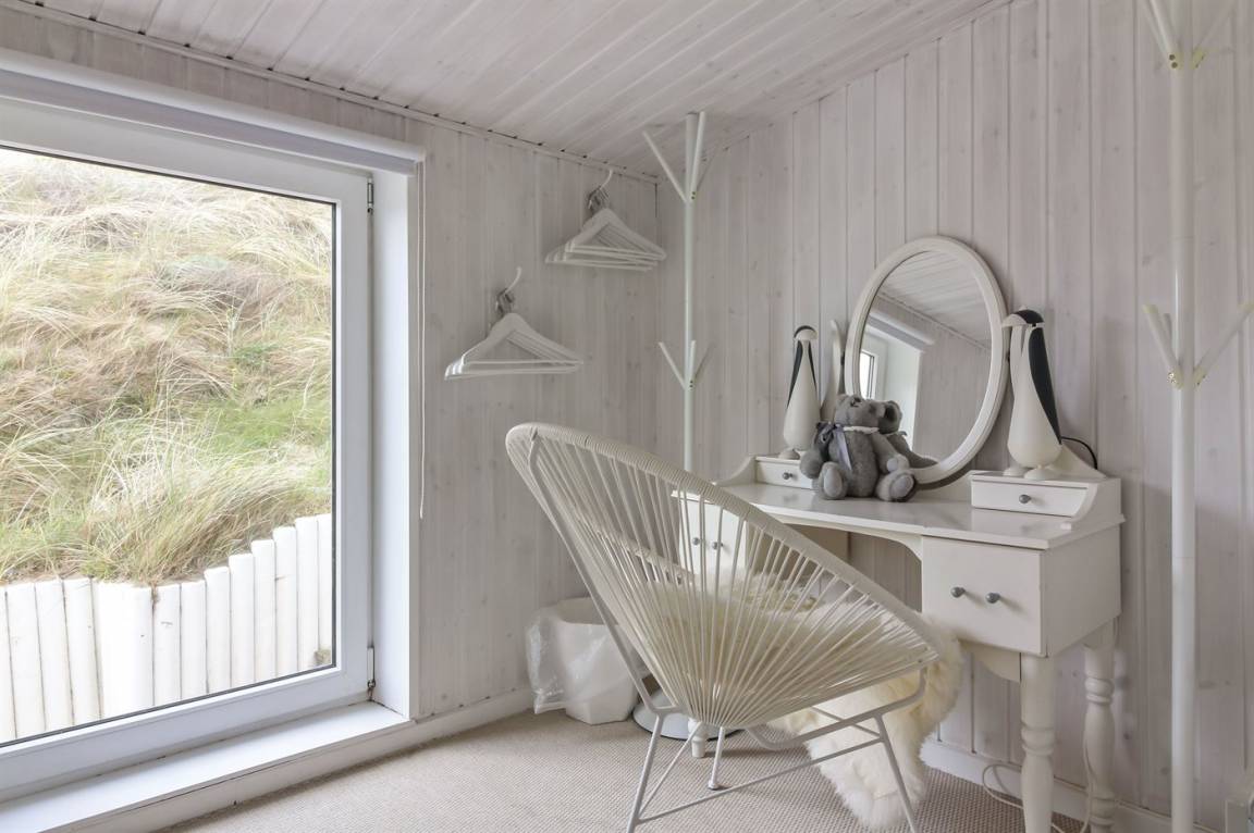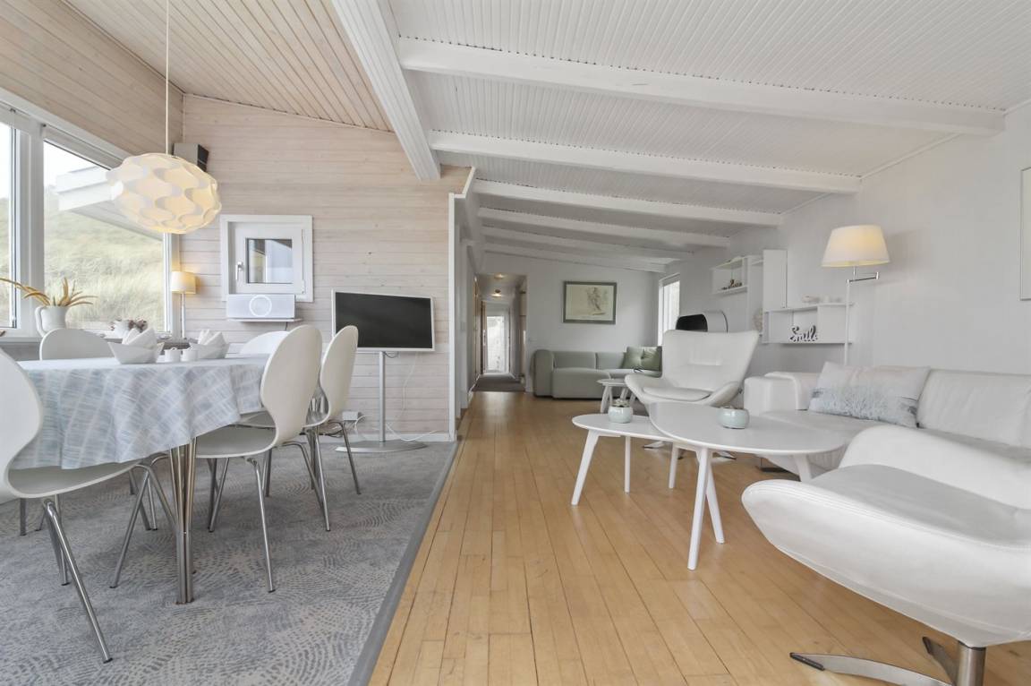 Fahren Sie durch die kleinen Straßen bis zu den hohen Dünen, wo sich dieses wunderschöne Ferienhaus oberhalb der Straße in der extremen Klippe zum Strand und zur Nordsee befindet. Das Haus ist in der Düne gut geschützt vom Westwind, und mit seiner hohen Lage gibt es einen schönen Blick auf das Ferienhaus vom Wohnzimmer. Von der Spitze des Hügels gibt es Meerblick. Zum Haus gehört eine geschlossene Terrasse nach Osten und Süden