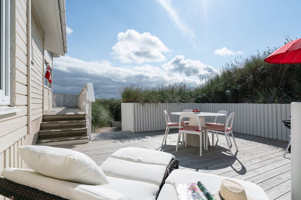 DraußenDie Ferienunterkunft liegt auf einem 1782 m² großen Dünengrundstück. Die Entfernung zum Meer beträgt 100 m. Die nächste Einkaufsmöglichkeit liegt 1000 m entfernt. In einem Abstand von 3000 m gibt es einen Golfplatz. Es steht ein 50 m² Terrassenareal zur Verfügung. Geräteraum. Parkplatz auf dem Grundstück.