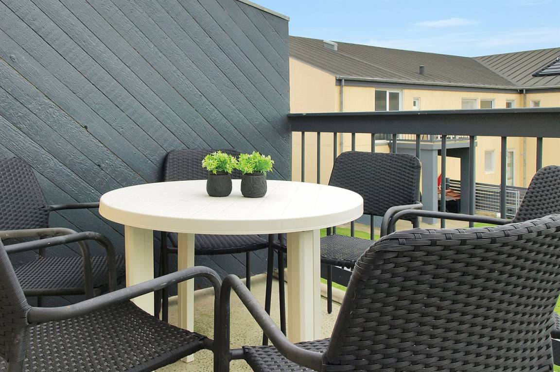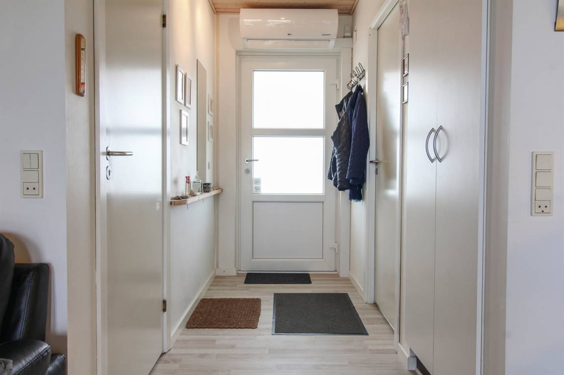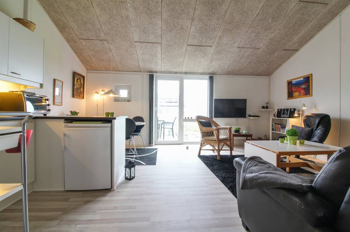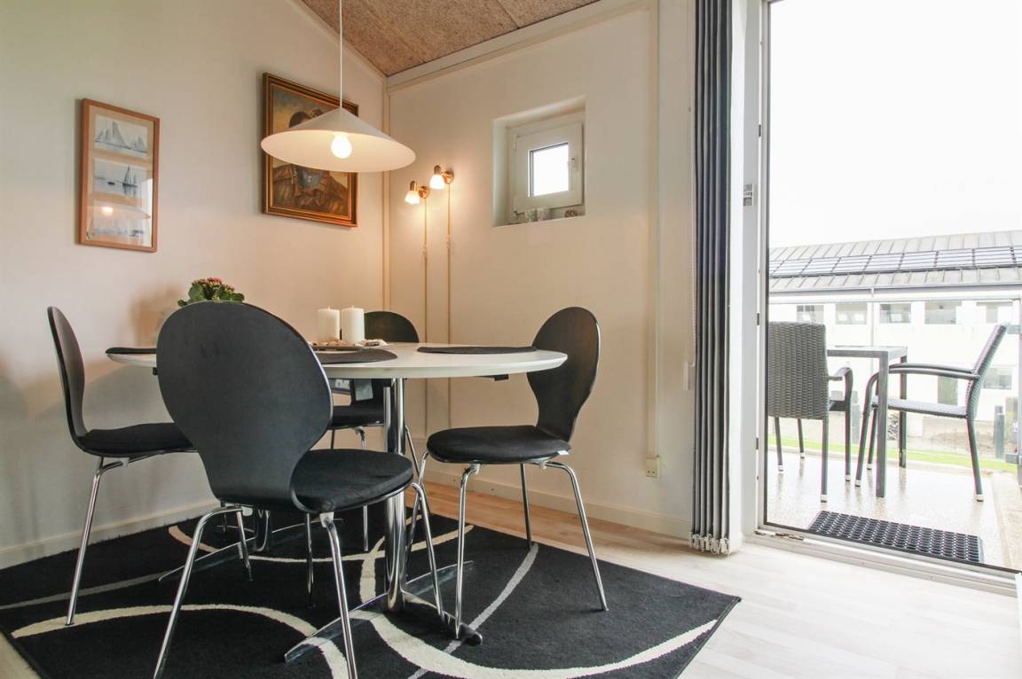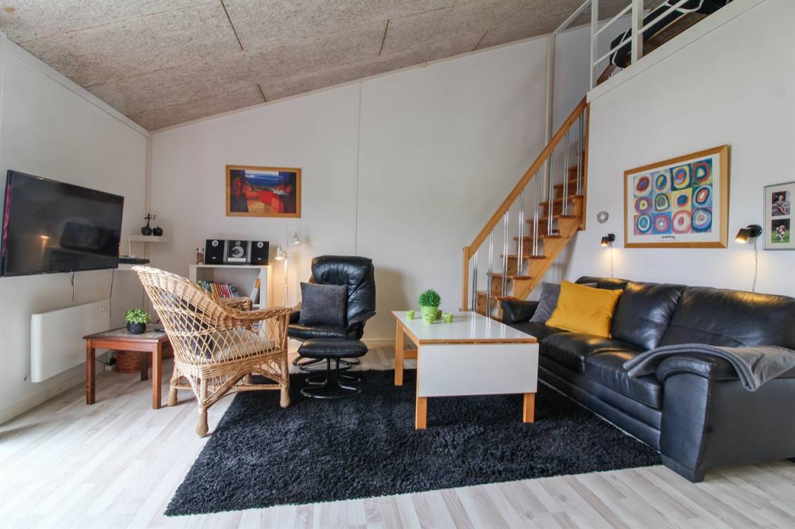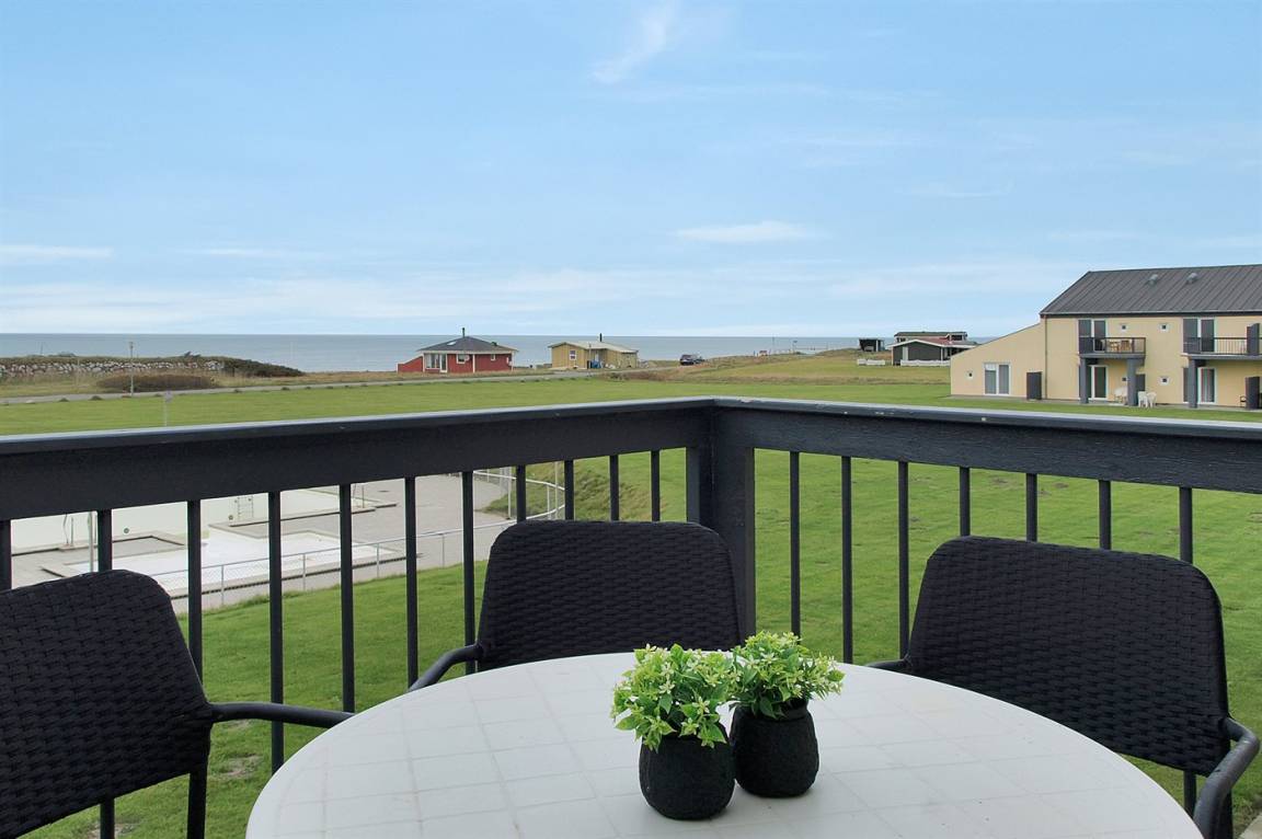 Ferienwohnung in Nr. Lyngby, ein schönes Ferienhausgebiet an der Westküste zwischen Løkken und Lønstrup. Nr. Lyngby ist für ihr Steilufer und den schönen Sandstrand bekannt. Zur Ferienanlage gehört ein gemeinsamer Swimmingpool sowie ein Kinderpool. Der Swimmingpool liegt auf dem großen, gemeinsamen Rasen und kann von Woche 26-34 benutzt werden. Guter Spielplatz für die Kinder auf dem Gemeinschaftsareal. Im Gemeinschaftsgebäude stehen Waschmaschinen und Wäschetrockner kostenlos zur Verfügung. Die Wohnung befindet sich im 1. Stock. An den schönen Sommerabenden können Sie den Sonnenuntergang genießen. Sowohl von der Wohnung als auch vom Grundstück gibt es eine prachtvolle Aussicht über das Wasser und die Küste. Offenes Obergeschoss mit 2 Schlafplätzen.