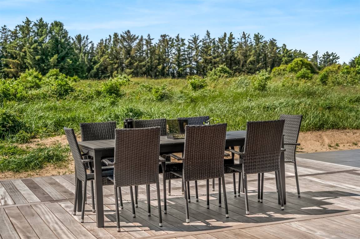 DraußenDie Ferienunterkunft liegt auf einem 4980 m² großen Naturgrundstück. Die Entfernung zum Meer beträgt 800 m. Die nächste Einkaufsmöglichkeit liegt 2000 m entfernt. Es steht ein offenes Terrassenareal zur Verfügung. Außerdem gibt es überdachte Terrasse. Es steht ein Grill zur Verfügung. Es ist ein Ladestecker für Elektroautos installiert. Ladestecker Typ 2. Mit einer Ladeleistung von 11 kW. Parkplatz auf dem Grundstück.