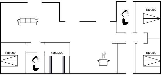 Das Ferienhaus eignet sich für 12 Personen. 2 der Schlafplätze eignen sich jedoch nur für größere Kinder (4-11 Jahre). Die Ferienunterkunft hat eine Wohnfläche von 150 m² und wurde 2025 gebaut. Es ist erlaubt 2 Haustiere mitzubringen. Die Ferienunterkunft ist mit einer energiefreundlichen Luft-Wasser-Wärmepumpe ausgestattet. Fußbodenheizung in allen Räumen. Die Ferienunterkunft ist mit Waschmaschine ausgestattet. Wäschetrockner. Tiefkühlmöglichkeit mit 45 Liter Nutzinhalt.