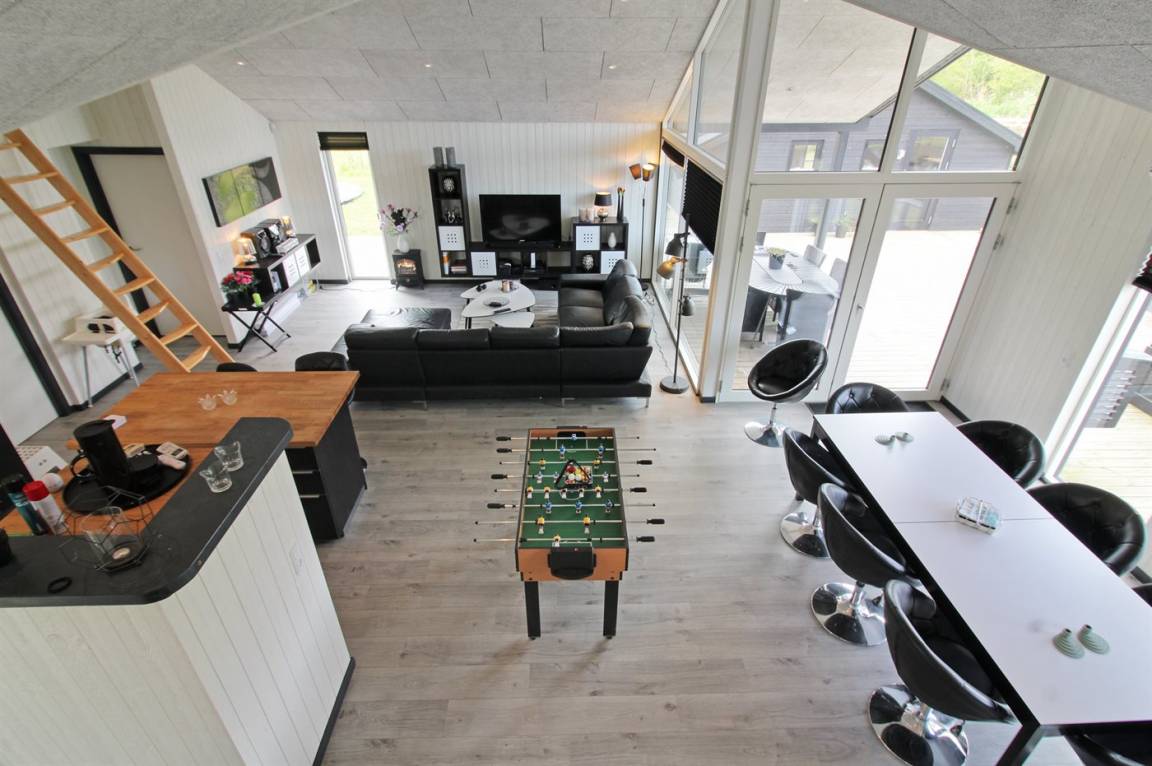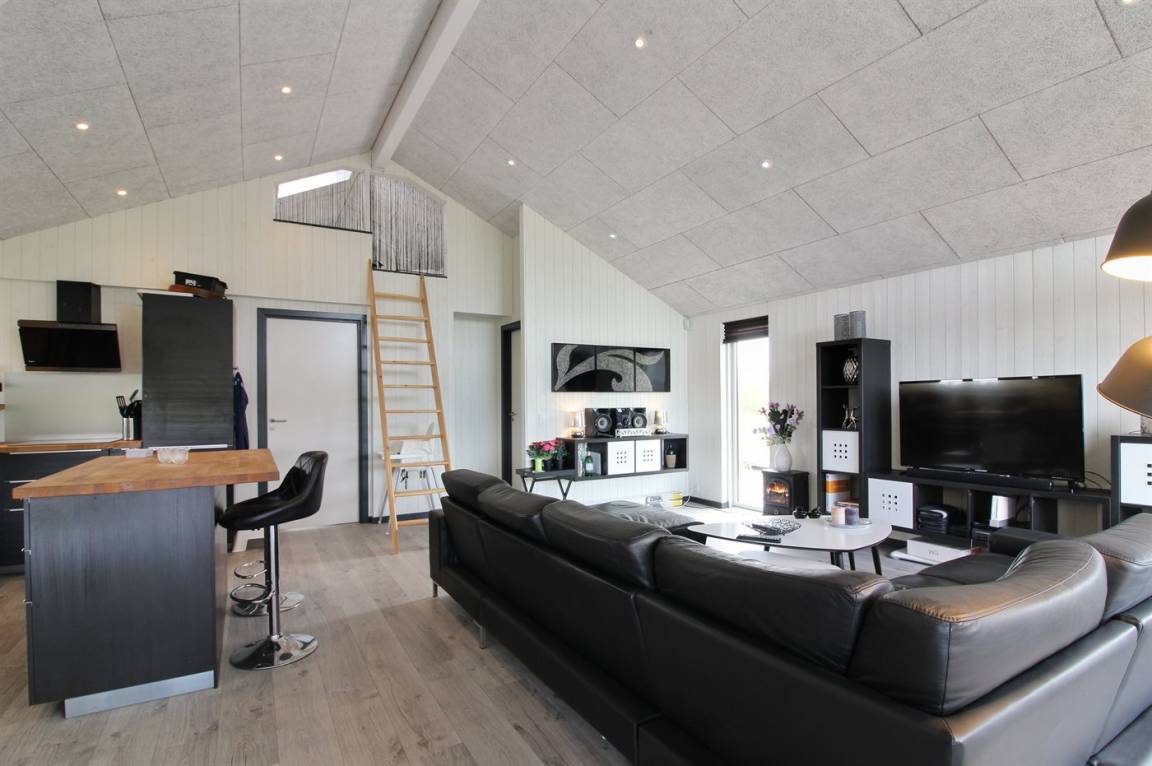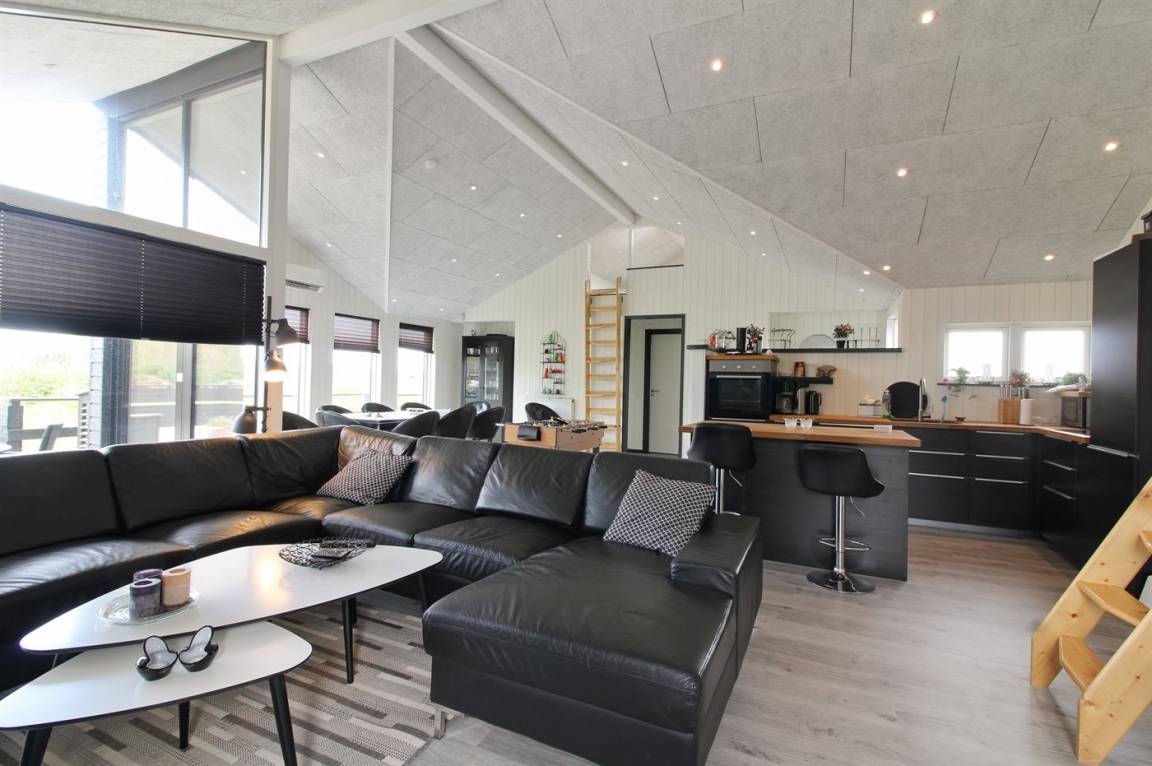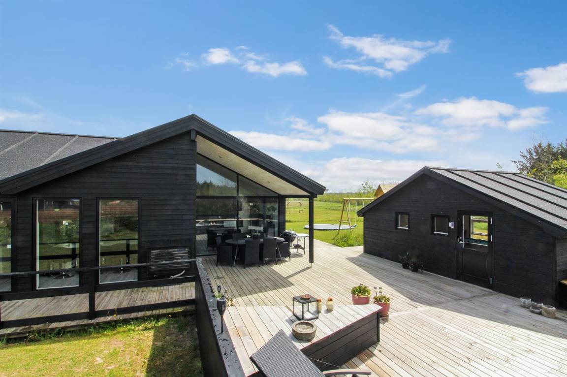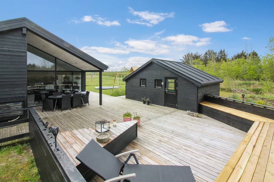 Ganz neues, reizvolles und geräumiges Ferienhaus, Baujahr 2017, das auf einem großen ungeschützten Grundstück in einer neu gegründeten Ferienhaussiedlung liegt, wo noch neue Häuser gebaut werden. Die Siedlung hat kurzen Abstand zum Meer und zu einem schönen Badestrand. Das Ferienhaus verfügt über eine schöne windgeschützte Terrasse und auf dem Grundstück befindet sich eine Sandbahn, die für verschiedene Outdoor-Aktivitäten benutzt werden kann.