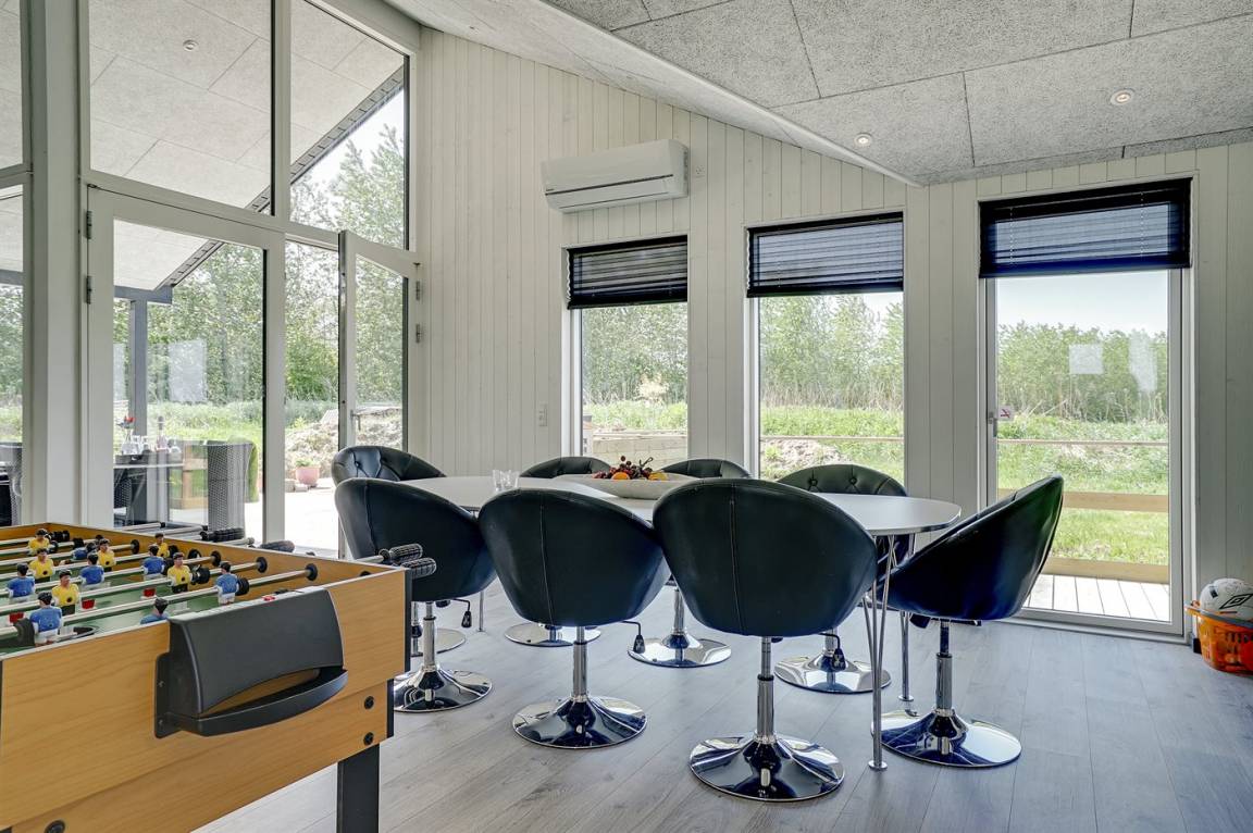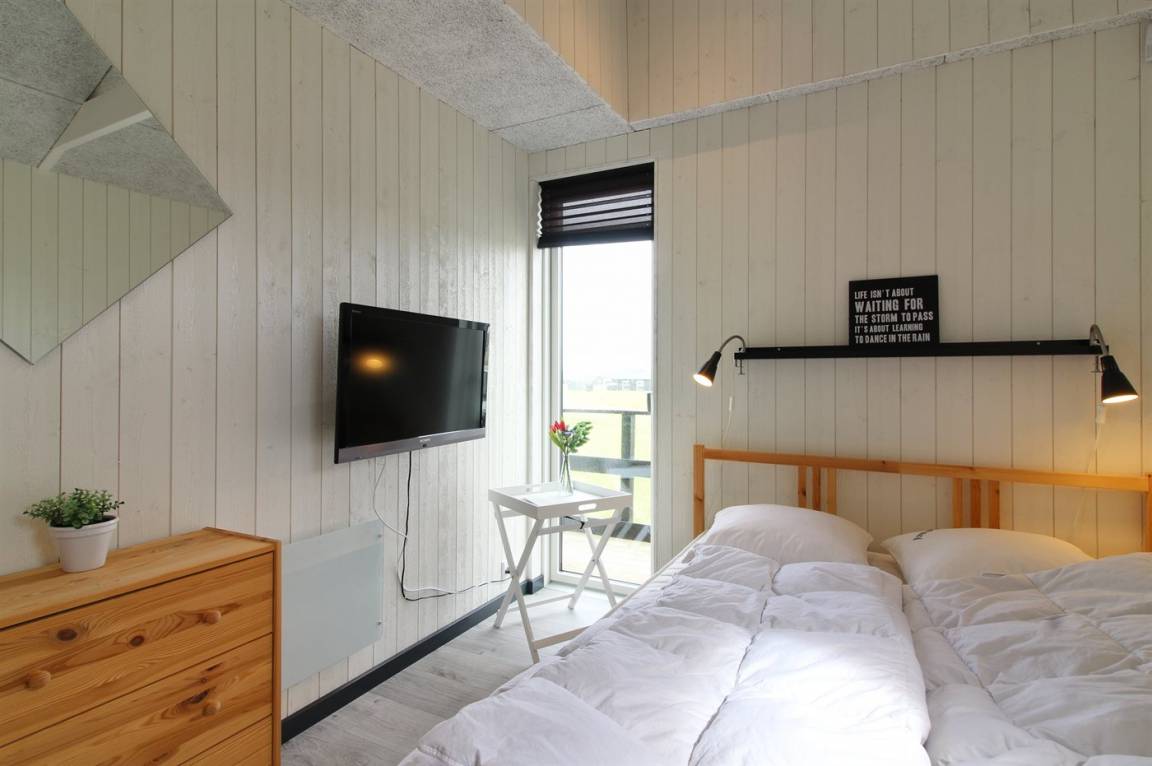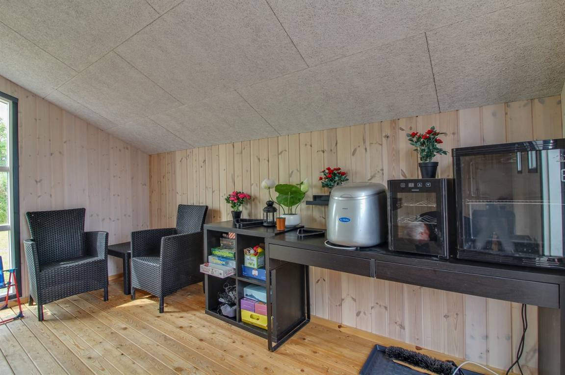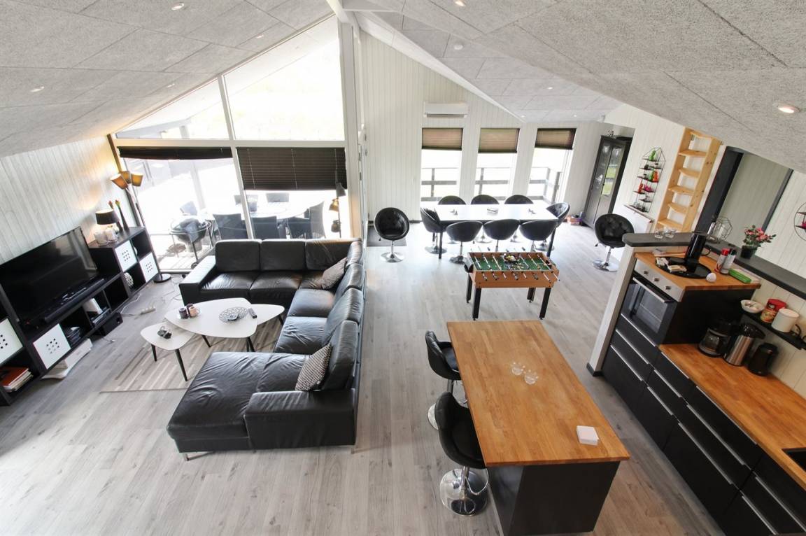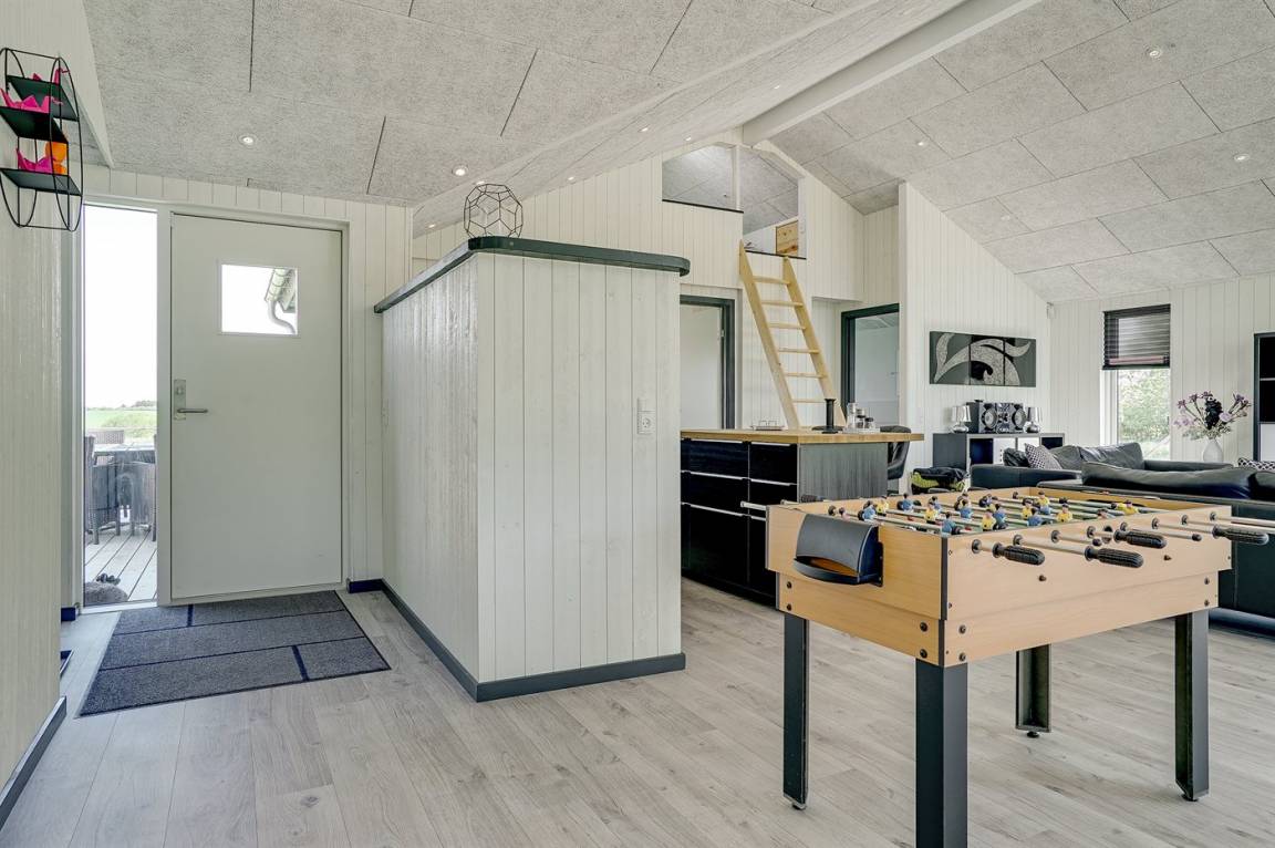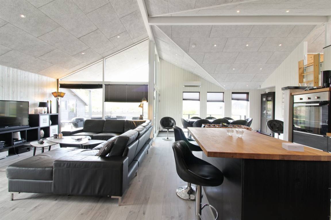 Ganz neues, reizvolles und geräumiges Ferienhaus, Baujahr 2017, das auf einem großen ungeschützten Grundstück in einer neu gegründeten Ferienhaussiedlung liegt, wo noch neue Häuser gebaut werden. Die Siedlung hat kurzen Abstand zum Meer und zu einem schönen Badestrand. Das Ferienhaus verfügt über eine schöne windgeschützte Terrasse und auf dem Grundstück befindet sich eine Sandbahn, die für verschiedene Outdoor-Aktivitäten benutzt werden kann.